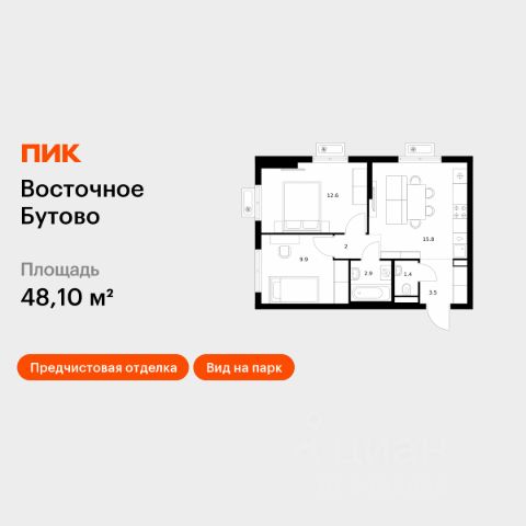 Продаётся 1-комн. квартира площадью 35 кв.м на 10 этаже 17 этажного дома (Корпус 48, Секция 2) проекта ПИК Восточное Бутово. Светлый просторный подъезд на уровне земли, функциональная планировка, большие окна, предчистовая отделка. Жилой квартал "Восточное Бутово" расположен в 5 км от МКАД по Симферопольскому шоссе, в Ленинском районе Московской области. Это экологически благоприятное место по соседству с Бутовским лесопарком. В 25 минутах на машине - станции метро и МЦД "Бутово". В "Восточном Бутово" уже открылись пять детских садов из десяти запланированных и одна школа из четырёх. Внутри квартала будет две поликлиники, одна из которых уже работает. В проекте два пешеходных бульвара - по одному из них уже можно гулять и кататься на велосипеде. В закрытых дворах-парках не будет автомобилей - мы построим многоуровневый паркинг, чтобы сделать район ещё более комфортным и безопасным для жителей. Артикул 641870 (Застройщик ООО "Лотан")