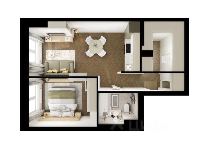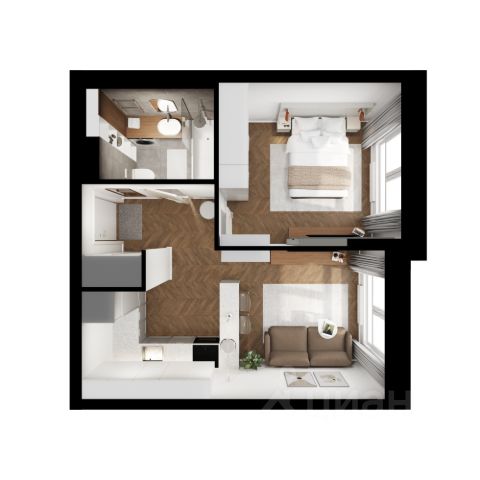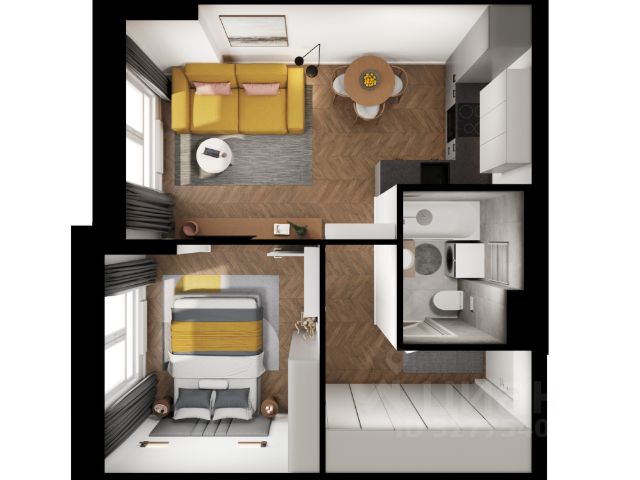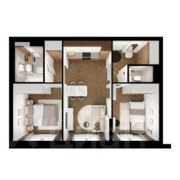 - планировка: кухня-гостиная (15,6 кв.м.), прихожая (3 кв.м.), санузел (2,6 кв.м.).