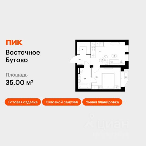 Продаётся 1-комн. квартира площадью 36 кв.м на 13 этаже 25 этажного дома (Корпус 55, Секция 1) проекта ПИК Восточное Бутово. Светлый просторный подъезд на уровне земли, функциональная планировка, большие окна, предчистовая отделка. Жилой квартал "Восточное Бутово" расположен в 5 км от МКАД по Симферопольскому шоссе, в Ленинском районе Московской области. Это экологически благоприятное место по соседству с Бутовским лесопарком. В 25 минутах на машине - станции метро и МЦД "Бутово". В "Восточном Бутово" уже открылись пять детских садов из десяти запланированных и одна школа из четырёх. Внутри квартала будет две поликлиники, одна из которых уже работает. В проекте два пешеходных бульвара - по одному из них уже можно гулять и кататься на велосипеде. В закрытых дворах-парках не будет автомобилей - мы построим многоуровневый паркинг, чтобы сделать район ещё более комфортным и безопасным для жителей. Артикул 1044202 (Застройщик ООО "Лотан")