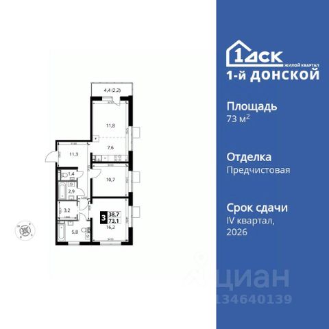 Прямая продажа от застройщика. Продаётся 3-комнатная квартира общей площадью 81.10 м² с предчистовой отделкой в ЖК "У реки. Эко Видное 2.0" на 16-м этаже 17 этажного корпуса Левитан. Все корпуса введены в эксплуатацию. Выдача ключей - II кв. 2025г. Семнадцатиэтажный корпус "Левитан" состоит из 13 секций, образующих в плане закрытый периметр двора. Эко-повестка и комфорт — это формат осознанной жизни, разработанный "Бюро А4" для благоустройства корпуса "Левитан". В проекте развиваются две темы: образ реки и настроения пейзажей Левитана которые раскрываются через четыре функциональные зоны. ЖК "У реки" — жилой микрорайон в Ленинском районе Подмосковья, в городе Видное. Архитектурные решения проекта разработаны бюро ADM, которое известно своими работами по созданию элитных объектов в столице. В проекте реализована продуманная европейская концепция благоустройства, включающая прогулочную набережную. О проекте: - 5 корпусов переменной этажности); - 8 км от МКАД, 30 минут до метро "Домодедовская", в 2025 года запланировано открытие станции МЦД-5 (дорога по Павелецкого вокзала займёт 30 минут); - Безопасные дворы с детскими и спортивными площадками для разных возрастов; - Собственная набережная с променадом, местами для пикников и рыбалки; - Два детских сада и школа на территории; - Развитая инфраструктура района; Компания MR предлагает своим клиентам специальные условия приобретения квартир в рамках программ ипотечного кредитования от банков-партнеров.