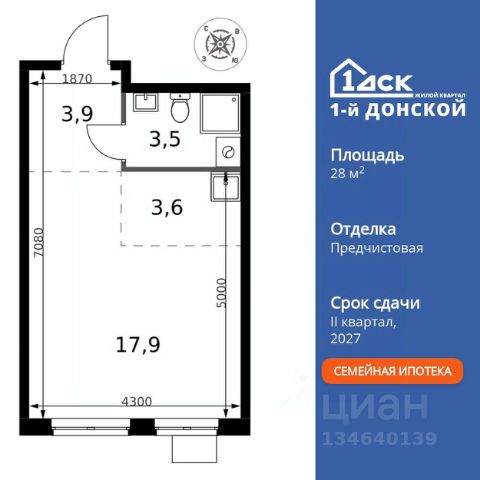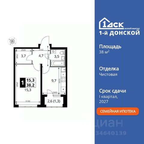 ДОПОЛНИТЕЛЬНАЯ СКИДКА ДО 10% В ОФИСЕ ПРОДАЖ! Прямая продажа от застройщика! Жилой Комплекс класса Комфорт Плюс. Продаётся 1-к квартира номер 254 общей площадью 34.6 кв.м. на 2-м этаже 24 этажного здания. Чистовая отделка. Особенности квартиры: - МЦД-5 в пешей доступности - Квартал с собственной набережной - Свои 2 детских сада и школа - Мастер-зона с гардеробной. Просторное место для отдыха и удобного хранения вещей. - Линейная планировка - максимальная функциональность и удобство. - Гардеробная - удобство для хранения и организации вещей. - Лоджия - уютное место для отдыха и тишины. Информация о комплексе: Комплекс 1-й Донской расположен в 7 км от МКАД по трассе М-4 Дон. В нем сочетаются все плюсы комфортной городской среды и природного окружения. В проекте достаточно большой процент квартир, выходящих на 2-3 стороны света. Секции-маяки формируют у зданий визуальную L-форму, что придает застройке структуру и ритмику объемов. На ощущение динамики работает и разная этажность зданий. Теплая цветовая палитра фасадов отражает природу Дона. Вечерами дома преображаются благодаря архитектурной подсветке, выгодно выделяясь на городском фоне. Природа оказывает положительное влияние на человека на всех уровнях восприятия: через зрение, запахи, звуки, тактильные ощущения. Неподалеку от ЖК Первый Донской: Ермолинский парк, Видновский лесопарк, Жуковский парк Транспортная доступность: Комплекс удобно расположен в 7 км от МКАД по трассе М-4 Дон (через Видное). Расстояние до Каширского шоссе составляет 12 км. Добраться до метро и центра Москвы позволяет развитая сеть маршрутов общественного наземного транспорта. Действующая ж/д станция Калинина Павелецкого направления в 15-17 минутах ходьбы (МЦД-5 в 2025-2026 гг). Внутренняя инфраструктура: Проект 1-й Донской соседствует с бурно развивающимся районом, основная инфраструктура которого уже сложилась. В строительстве современных жилых комплексов в округе есть свои плюсы: здесь формируется продуманная и комфортная городская среда. Что касается внутренней инфраструктуры, на территории квартала будут расположены собственные муниципальные 2 детских садика и школа, которые помогут совместить приятное с полезным. Территория комплекса пронизана целой сетью живописных пешеходных маршрутов, позволяющих попасть в любой уголок района. Основные пути, как водится, "торговые". Они проходят вдоль магазинов, кафе и других представителей коммерции и отделяются от проезжей части зеленой "фито" - стеной. Среди крупных социальных объектов предусмотрены своя поликлиника и торговый центр с примыкающей площадью для общественных мероприятий. Уют начинается с продуманного подъезда. Сквозные подъезды наполнены светом благодаря сплошному остеклению. Вход в них есть и с улицы, и со двора.