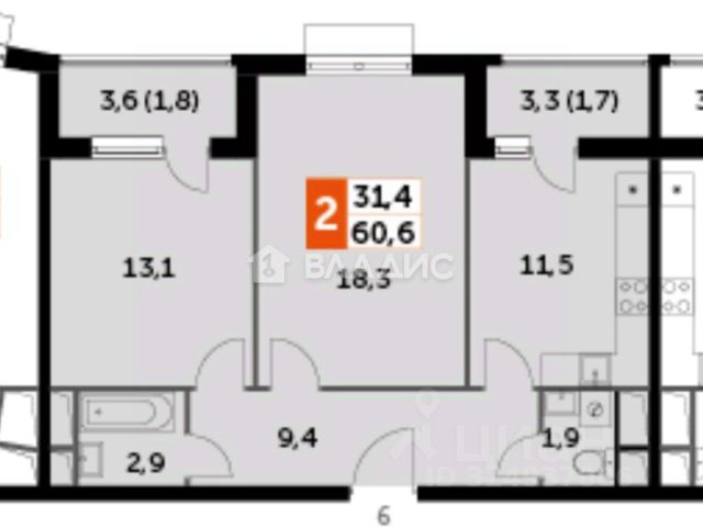- Две отдельные комнаты 18,3 и 13,1 кв. метров, спальня с лоджией, просторная кухня 11,5 метров с лоджией.