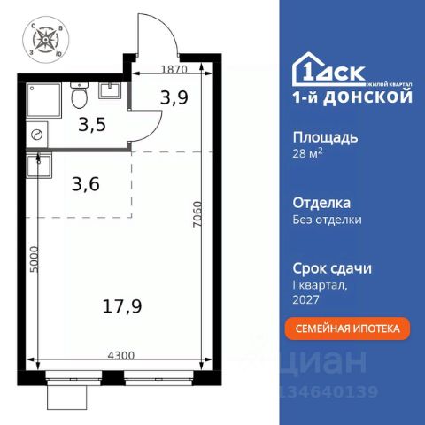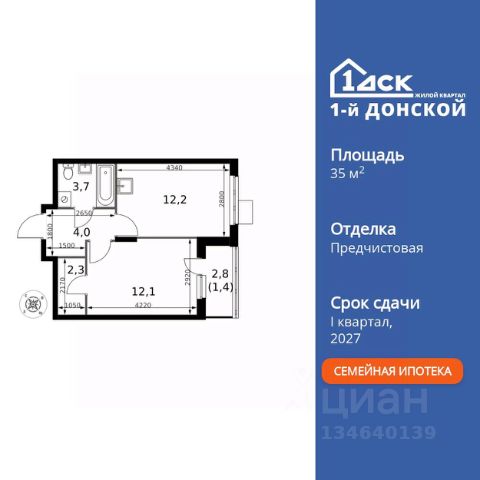 Прямая продажа от застройщика! Жилой Комплекс класса Комфорт Плюс. Продаётся 1-к квартира номер 27 общей площадью 37.1 кв.м. на 4-м этаже 24 этажного здания. Без отделки. Цена с учётом скидки. Особенности квартиры: - МЦД-5 в пешей доступности - Квартал с собственной набережной - Свои 2 детских сада и школа - Организуем показ в удобное для вас время! - Линейная планировка - максимальная функциональность и удобство. - Гардеробная - удобство для хранения и организации вещей. - Ниша под шкаф - компактное и удобное место для вещей. - Лоджия - уютное место для отдыха и тишины. Квартира без отделки. Чистый холст для воплощения интерьера вашей мечты. Информация о комплексе: ЖК "1-й Донской" в 7 км от МКАД: гармония городского комфорта и природы. Квартиры на 2-3 стороны света, форма секций и разная этажность создают динамичную архитектуру. Тёплая палитра фасадов и подсветка подчеркивают образ. Рядом - Ермолинский парк, Видновский лесопарк и Жуковский парк. Природа воздействует на все уровни восприятия: от видов до звуков и ароматов. Идеальный баланс для жизни в гармонии с окружающей средой. Транспортная доступность: Комплекс удобно расположен в 7 км от МКАД по трассе М-4 Дон (через Видное). Расстояние до Каширского шоссе составляет 12 км. Добраться до метро и центра Москвы позволяет развитая сеть маршрутов общественного наземного транспорта. Действующая ж/д станция Калинина Павелецкого направления в 15-17 минутах ходьбы (МЦД-5 в 2025-2026 гг). Внутренняя инфраструктура: "1-й Донской": продуманная среда в развивающемся районе. На территории - муниципальные школа и 2 детских сада, поликлиника, торговый центр с площадью для мероприятий. Сеть пешеходных маршрутов ведёт к магазинам и кафе, отделённым от дорог зелёными фито-стенами. Сквозные подъезды с панорамным остеклением и входами с улицы и двора наполнены светом. Всё для комфортной жизни в шаговой доступности, от повседневных нужд до общественных пространств. Квартира без отделки - чистый холст для вашего интерьера.