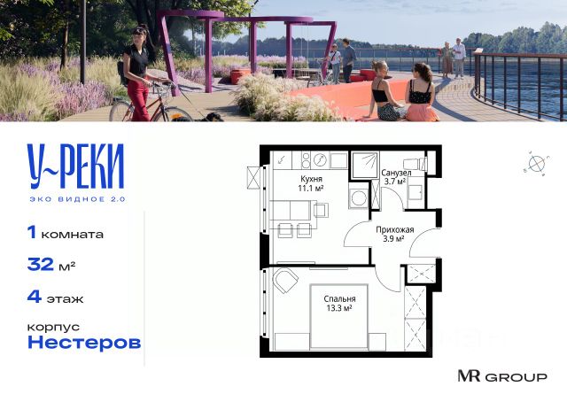 Прямая продажа от застройщика. Продаётся 1-комнатная квартира общей площадью 32 м² с предчистовой отделкой в ЖК "У реки. Эко Видное 2.0" на 4-м этаже корпуса Нестеров. Все корпуса введены в эксплуатацию. Выдача ключей - I кв. 2025г. Жилой комплекс "У реки" - уникальный проект комфорт-класса, в котором применяются стандарты строительства и сервиса MR, характерные для проектов девелопера бизнес и премиум-классов. 17-этажный корпус "Нестеров" расположится на живописном берегу реки Купелинка. Из его квартир откроются захватывающие виды на реку и лес на её противоположном берегу. О проекте: - 5 корпусов переменной этажности; - 8 км от МКАД, 30 минут до метро "Домодедовская", в 2025 года запланировано открытие станции МЦД-5 (дорога по Павелецкого вокзала займёт 30 минут); - Безопасные дворы с детскими и спортивными площадками для разных возрастов; - Собственная набережная с променадом, местами для пикников и рыбалки; - Два детских сада и школа на территории; - Развитая инфраструктура района; - Отделка MR Base (white box) Компания MR предлагает своим клиентам специальные условия приобретения квартир в рамках программ ипотечного кредитования от банков-партнеров.
