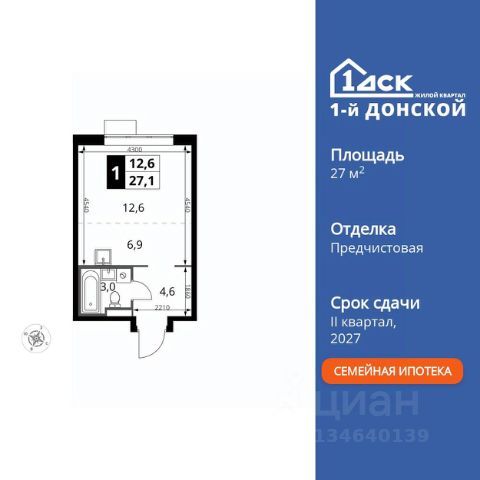 Прямая продажа от застройщика! Жилой Комплекс класса Комфорт Плюс. Продаётся квартира-студия номер 302 общей площадью 28.9 кв.м. на 6-м этаже 24 этажного здания. Без отделки. Цена с учётом скидки. Особенности квартиры: - МЦД-5 в пешей доступности - Квартал с собственной набережной - Свои 2 детских сада и школа - Организуем показ в удобное для вас время! - Линейная планировка - максимальная функциональность и удобство. Квартира без отделки. Чистый холст для воплощения интерьера вашей мечты. Информация о комплексе: ЖК "1-й Донской" в 7 км от МКАД: гармония городского комфорта и природы. Квартиры на 2-3 стороны света, форма секций и разная этажность создают динамичную архитектуру. Тёплая палитра фасадов и подсветка подчеркивают образ. Рядом - Ермолинский парк, Видновский лесопарк и Жуковский парк. Природа воздействует на все уровни восприятия: от видов до звуков и ароматов. Идеальный баланс для жизни в гармонии с окружающей средой. Транспортная доступность: Комплекс удобно расположен в 7 км от МКАД по трассе М-4 Дон (через Видное). Расстояние до Каширского шоссе составляет 12 км. Добраться до метро и центра Москвы позволяет развитая сеть маршрутов общественного наземного транспорта. Действующая ж/д станция Калинина Павелецкого направления в 15-17 минутах ходьбы (МЦД-5 в 2025-2026 гг). Внутренняя инфраструктура: "1-й Донской": продуманная среда в развивающемся районе. На территории - муниципальные школа и 2 детских сада, поликлиника, торговый центр с площадью для мероприятий. Сеть пешеходных маршрутов ведёт к магазинам и кафе, отделённым от дорог зелёными фито-стенами. Сквозные подъезды с панорамным остеклением и входами с улицы и двора наполнены светом. Всё для комфортной жизни в шаговой доступности, от повседневных нужд до общественных пространств. Квартира без отделки - чистый холст для вашего интерьера.