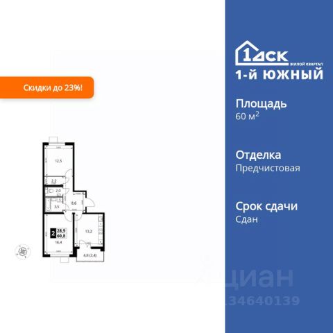 Прямая продажа от застройщика! Жилой Комплекс класса Комфорт Плюс. Продаётся 1-к квартира номер 22 общей площадью 41.6 кв.м. на 7-м этаже 24 этажного здания. Отделка Whitebox. Цена с учётом скидки. Особенности квартиры: - МЦД-5 в пешей доступности - Квартал с южным садом - Свои 3 детских сада и 2 большие школы - Линейная планировка - максимальная функциональность и удобство. - Гостевой санузел - комфорт и удобство для ваших гостей. - Раздельный санузел - больше удобства для всех членов семьи. - Просторная кухня - место для семейных ужинов и кулинарных экспериментов. - Просторная мягкая зона - комфорт и уют для отдыха всей семьи. - Возможность добавить спальное место - дополнительный комфорт для гостей. - Лоджия - уютное место для отдыха и тишины. Квартира с предчистовой отделкой (White box). Вам не придется заниматься черновыми и трудоёмкими работы, а чистовую отделку и дизайн - сделайте на свой вкус. Информация о комплексе: Одно из преимуществ проектов 1- ДСК большие застекленные лоджии. Другое преимущество честный евро-формат. Во всем проекте предусмотрена система Умный дом. В состав устанавливаемого пакета устройств входит: WiFi реле для управления группами потребителей, беспроводной кран перекрытия с эл. приводом, беспроводной сенсор протечки, Яндекс Станция Мини. Его расположение можно назвать удачным за счет транспортной доступности и близости к природным объектам. По соседству лес, а в каждом дворе плодовые деревья. Весной квартал окутывает бело-розовое облако: это цветут яблони, груши, сливы. К августу в воздух наполняется ароматом созревших плодов. Зимой среди покрытых инеем деревьев протянулась лыжня. Транспортная доступность: - Общественный транспорт: Действующая ж/д станция Булатниково (в перспективе будущая МДЦ D5) в пешей доступности, всего 10-12 минут. - Личный автотранспорт: Удобный выезд на трассу М4-Дон в сторону Москвы и области 850 м, до МКАД - 1 км Внутренняя инфраструктура: Красивые продуманные подъезды - еще одно преимущество проекта 1-й Южный. Вход в сквозные подъезды есть и с улицы, и со двора. Благодаря сплошному остеклению в них всегда светло и уютно. Подъезды расположены на уровне земли, поэтому и молодым родителям с коляской, и жильцам с ограниченными возможностями вход и выход неудобств не доставят. В помещении предусмотрено место под стойку ресепшен с выводом инженерных сетей. Если жильцы решат на общем собрании, что необходим охранник или консьерж, организовать для них рабочее место можно быстро и с минимальными затратами. В подъездах предусмотрены уборные для детей и взрослых. Колясочные в каждом подъезде позволяют поддерживать порядок и чистоту на этажах. На случай прогулки с четвероногим питомцем в непогоду в подъездах устроены лапомойки. Во дворах и на общественных территориях 1-ого Южного столько всего интересного для юных обитателей. Собственные 3 детских сада и 2 больших школы буквально под окнами Изюминка проекта - пешеходный бульвар-дендрарий, он идеален для сем
