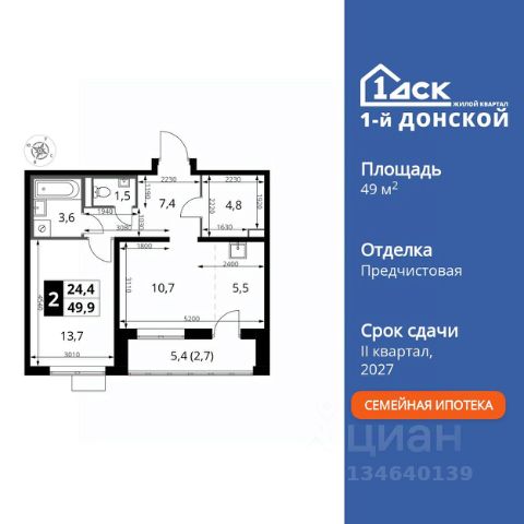 Прямая продажа от застройщика! Жилой Комплекс класса Комфорт Плюс. Продаётся 4-к квартира номер 196 общей площадью 108.2 кв.м. на 7-м этаже 24 этажного здания. Предчистовая отделка. Цена с учётом скидки. Особенности квартиры: - МЦД-5 в пешей доступности - Квартал с собственной набережной - Свои 2 детских сада и школа - Организуем показ в удобное для вас время! - Просторная спальня, в которой можно разместить большую кровать. - Гостевой санузел - комфорт и удобство для ваших гостей. - Раздельный санузел - больше удобства для всех членов семьи. - Просторная кухня - место для семейных ужинов и кулинарных экспериментов. - Просторная мягкая зона - комфорт и уют для отдыха всей семьи. - Возможность добавить спальное место - дополнительный комфорт для гостей. - Гардеробная - удобство для хранения и организации вещей. - Ниша под шкаф - компактное и удобное место для вещей. - Лоджия - уютное место для отдыха и тишины. Квартира с предчистовой отделкой. Вам не придется заниматься черновыми и трудоёмкими работы, а чистовую отделку и дизайн - сделайте на свой вкус. Информация о комплексе: ЖК "1-й Донской" в 7 км от МКАД: гармония городского комфорта и природы. Квартиры на 2-3 стороны света, форма секций и разная этажность создают динамичную архитектуру. Тёплая палитра фасадов и подсветка подчеркивают образ. Рядом - Ермолинский парк, Видновский лесопарк и Жуковский парк. Природа воздействует на все уровни восприятия: от видов до звуков и ароматов. Идеальный баланс для жизни в гармонии с окружающей средой. Транспортная доступность: Комплекс удобно расположен в 7 км от МКАД по трассе М-4 Дон (через Видное). Расстояние до Каширского шоссе составляет 12 км. Добраться до метро и центра Москвы позволяет развитая сеть маршрутов общественного наземного транспорта. Действующая ж/д станция Калинина Павелецкого направления в 15-17 минутах ходьбы (МЦД-5 в 2025-2026 гг). Внутренняя инфраструктура: "1-й Донской": продуманная среда в развивающемся районе. На территории - муниципальные школа и 2 детских сада, поликлиника, торговый центр с площадью для мероприятий. Сеть пешеходных маршрутов ведёт к магазинам и кафе, отделённым от дорог зелёными фито-стенами. Сквозные подъезды с панорамным остеклением и входами с улицы и двора наполнены светом. Всё для комфортной жизни в шаговой доступности, от повседневных нужд до общественных пространств. Цена с учётом скидки. Квартира с предчистовой отделкой - ваш дизайн без черновых работ