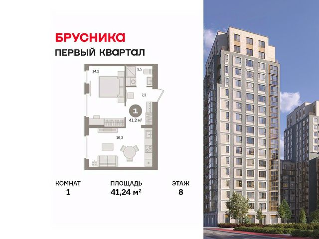Продаётся с кладовой. Квартира с кухней-гостиной и одной спальней в "Первом квартале". Особенности планировки: вид во двор, предчистовая отделка. квартиры в нашей базе: МТК01-Ж4.8.5.