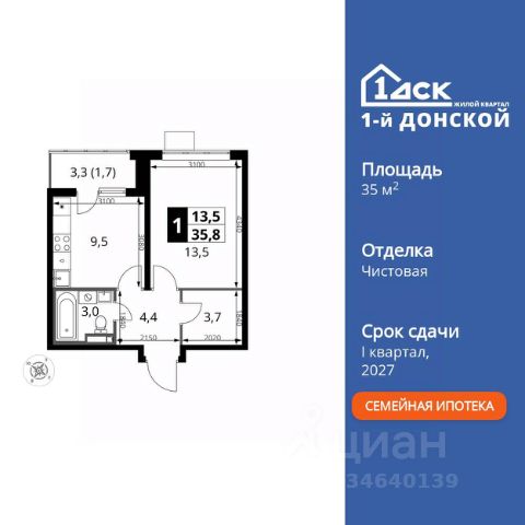 Прямая продажа от застройщика! Жилой Комплекс класса Комфорт Плюс. Продаётся 1-к квартира номер 65 общей площадью 35.8 кв.м. на 8-м этаже 24 этажного здания. Чистовая отделка. Особенности квартиры: - МЦД-5 в пешей доступности - Квартал с собственной набережной - Свои 2 детских сада и школа - Организуем показ в удобное для вас время! - Линейная планировка - максимальная функциональность и удобство. - Линейная кухня - функциональность и практичность в одном решении. - Гардеробная - удобство для хранения и организации вещей. - Лоджия - уютное место для отдыха и тишины. Квартира с чистовой отделкой. Раскройте свою индивидуальность в создании своего уникального проекта, а трудоемкий ремонт мы возьмем на себя! Вы идете в ногу со временем и предпочитаете современные, универсальные дизайнерские решения? Или вы любитель строгой лаконичной классики? Тогда наши интерьеры придутся вам по душе! Выбирайте то, что ближе лично Вам и реализуйте свои задумки вместе с нами! Информация о комплексе: ЖК "1-й Донской" в 7 км от МКАД: гармония городского комфорта и природы. Квартиры на 2-3 стороны света, форма секций и разная этажность создают динамичную архитектуру. Тёплая палитра фасадов и подсветка подчеркивают образ. Рядом - Ермолинский парк, Видновский лесопарк и Жуковский парк. Природа воздействует на все уровни восприятия: от видов до звуков и ароматов. Идеальный баланс для жизни в гармонии с окружающей средой. Транспортная доступность: Комплекс удобно расположен в 7 км от МКАД по трассе М-4 Дон (через Видное). Расстояние до Каширского шоссе составляет 12 км. Добраться до метро и центра Москвы позволяет развитая сеть маршрутов общественного наземного транспорта. Действующая ж/д станция Калинина Павелецкого направления в 15-17 минутах ходьбы (МЦД-5 в 2025-2026 гг). Внутренняя инфраструктура: "1-й Донской": продуманная среда в развивающемся районе. На территории - муниципальные школа и 2 детских сада, поликлиника, торговый центр с площадью для мероприятий. Сеть пешеходных маршрутов ведёт к магазинам и кафе, отделённым от дорог зелёными фито-стенами. Сквозные подъезды с панорамным остеклением и входами с улицы и двора наполнены светом. Всё для комфортной жизни в шаговой доступности, от повседневных нужд до общественных пространств. Квартира с чистовой отделкой: ваш стиль без ремонта. Выбирайте современный дизайн или классику - мы воплотим ваши идеи. Готовые интерьеры для уникального дома.