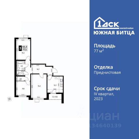 УСПЕЙ ПО СЕМЕЙНОЙ ИПОТЕКЕ БЕЗ НАЦЕНКИ! От 39 000 рублей в месяц! Прямая продажа от застройщика! Семейный жилой район класса Комфорт Плюс Продаётся 3-к квартира номер 262 общей площадью 77.7 кв.м. на 9-м этаже 20 этажного здания. Отделка Whitebox. Цена с учётом скидки. Особенности квартиры: - Гостевой санузел - комфорт и удобство для ваших гостей. - Просторная кухня - место для семейных ужинов и кулинарных экспериментов. - Гардеробная - удобство для хранения и организации вещей. - Ниша под шкаф - компактное и удобное место для вещей. - Лоджия - уютное место для отдыха и тишины. - Панорамное остекление лоджии - открывает вид на окружающий мир. Квартира с предчистовой отделкой (White box). Вам не придется заниматься черновыми и трудоёмкими работы, а чистовую отделку и дизайн - сделайте на свой вкус. Информация о комплексе: Сочетание свободного перемещения по внутреннней территории без машин и ощущения абсолютной безопасности благодаря надежным ограждениям - вот что отличает ЖК Южная Битца. На территории комплекса созданы все условия как для активного образа жизни, так и для спокойного времяпрепровождения. Свободно перемещайтесь по внутренней территории в безбарьерной среде! Продуманное зонирование во дворах позволяет отделить тихие зоны для родителей со спящими младенцами и тех, кто хочет почитать на свежем воздухе, от шумных игровых зон. Игровые зоны учитывают возраст детей. Площадки для детей старшего возраста вынесены за пределы дворов. Ощущение уютного дома должно начинаться с подъезда. Мы постарались предусмотреть все нюансы, чтобы наши лифты отвечали самым строгим современным требованиям. А наличие кладовых позволит вам поддерживать идеальный порядок и уют в вашей квартире! Транспортная доступность: В 3 км от МКАД в нескольких минутах езды до трех станций метро: Аннино, Бульвар Дмитрия Донского, улица Старокочаловская и станции МЦД2 - жд Бутово. Внутренняя инфраструктура: Для жителей жилого района "Южная Битца" доступна развитая инфраструктура близлежащих московских районов Чертаново, Южное, Бирюлёво Западное, Северное Бутово и Южное Бутово. Множество образовательных учреждений, объекты здравоохранения, торговые и развлекательные центры, кинотеатры, кафе, рестораны, парки.