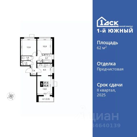 УСПЕЙ ПО СЕМЕЙНОЙ ИПОТЕКЕ БЕЗ НАЦЕНКИ! Квартиры с отделкой от 40 000 рублей в месяц! Прямая продажа от застройщика! Жилой Комплекс класса Комфорт Плюс. Продаётся 3-к квартира номер 691 общей площадью 62.5 кв.м. на 9-м этаже 25 этажного здания. Отделка Whitebox. Цена с учётом скидки. Особенности квартиры: - МЦД-5 в пешей доступности - Квартал с южным садом - Свои 3 детских сада и 2 большие школы - Угловая планировка - больше пространства для ваших идей. - Окно в ванной - натуральное освещение для уюта и комфорта. - Гостевой санузел - комфорт и удобство для ваших гостей. - Раздельный санузел - больше удобства для всех членов семьи. - Евроформат - просторное и удобное жилье с отличной планировкой. - Просторная мягкая зона - комфорт и уют для отдыха всей семьи. - Кухня-гостиная - идеальное пространство для встреч с близкими. - Возможность добавить спальное место - дополнительный комфорт для гостей. - Гардеробная - удобство для хранения и организации вещей. - Просторная лоджия - идеальное место для уютных вечеров. Квартира с предчистовой отделкой (White box). Вам не придется заниматься черновыми и трудоёмкими работы, а чистовую отделку и дизайн - сделайте на свой вкус. Информация о комплексе: Одно из преимуществ проектов 1- ДСК большие застекленные лоджии. Другое преимущество честный евро-формат. Во всем проекте предусмотрена система Умный дом. В состав устанавливаемого пакета устройств входит: WiFi реле для управления группами потребителей, беспроводной кран перекрытия с эл. приводом, беспроводной сенсор протечки, Яндекс Станция Мини. Его расположение можно назвать удачным за счет транспортной доступности и близости к природным объектам. По соседству лес, а в каждом дворе плодовые деревья. Весной квартал окутывает бело-розовое облако: это цветут яблони, груши, сливы. К августу в воздух наполняется ароматом созревших плодов. Зимой среди покрытых инеем деревьев протянулась лыжня. Транспортная доступность: - Общественный транспорт: Действующая ж/д станция Булатниково (в перспективе будущая МДЦ D5) в пешей доступности, всего 10-12 минут. - Личный автотранспорт: Удобный выезд на трассу М4-Дон в сторону Москвы и области 850 м, до МКАД - 1 км Внутренняя инфраструктура: Красивые продуманные подъезды - еще одно преимущество проекта 1-й Южный. Вход в сквозные подъезды есть и с улицы, и со двора. Благодаря сплошному остеклению в них всегда светло и уютно. Подъезды расположены на уровне земли, поэтому и молодым родителям с коляской, и жильцам с ограниченными возможностями вход и выход неудобств не доставят. В помещении предусмотрено место под стойку ресепшен с выводом инженерных сетей. Если жильцы решат на общем собрании, что необходим охранник или консьерж, организовать для них рабочее место можно быстро и с минимальными затратами. В подъездах предусмотрены уборные для детей и взрослых. Колясочные в каждом подъезде позволяют поддерживать порядок и чистоту на этажах. На случай прогулки с четвероногим питомцем в неп
