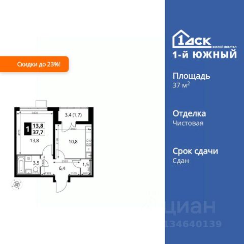 Прямая продажа от застройщика! Жилой Комплекс класса Комфорт Плюс. Продаётся 1-к квартира номер 382 общей площадью 37.7 кв.м. на 9-м этаже 25 этажного здания. Чистовая отделка. Цена с учётом скидки. Особенности квартиры: - МЦД-5 в пешей доступности - Квартал с южным садом - Свои 3 детских сада и 2 большие школы - Линейная планировка - максимальная функциональность и удобство. - Просторная мягкая зона - комфорт и уют для отдыха всей семьи. - Возможность добавить спальное место - дополнительный комфорт для гостей. - Гардеробная - удобство для хранения и организации вещей. - Лоджия - уютное место для отдыха и тишины. Информация о комплексе: Одно из преимуществ проектов 1- ДСК большие застекленные лоджии. Другое преимущество честный евро-формат. Во всем проекте предусмотрена система Умный дом. В состав устанавливаемого пакета устройств входит: WiFi реле для управления группами потребителей, беспроводной кран перекрытия с эл. приводом, беспроводной сенсор протечки, Яндекс Станция Мини. Его расположение можно назвать удачным за счет транспортной доступности и близости к природным объектам. По соседству лес, а в каждом дворе плодовые деревья. Весной квартал окутывает бело-розовое облако: это цветут яблони, груши, сливы. К августу в воздух наполняется ароматом созревших плодов. Зимой среди покрытых инеем деревьев протянулась лыжня. Транспортная доступность: - Общественный транспорт: Действующая ж/д станция Булатниково (в перспективе будущая МДЦ D5) в пешей доступности, всего 10-12 минут. - Личный автотранспорт: Удобный выезд на трассу М4-Дон в сторону Москвы и области 850 м, до МКАД - 1 км Внутренняя инфраструктура: Красивые продуманные подъезды - еще одно преимущество проекта 1-й Южный. Вход в сквозные подъезды есть и с улицы, и со двора. Благодаря сплошному остеклению в них всегда светло и уютно. Подъезды расположены на уровне земли, поэтому и молодым родителям с коляской, и жильцам с ограниченными возможностями вход и выход неудобств не доставят. В помещении предусмотрено место под стойку ресепшен с выводом инженерных сетей. Если жильцы решат на общем собрании, что необходим охранник или консьерж, организовать для них рабочее место можно быстро и с минимальными затратами. В подъездах предусмотрены уборные для детей и взрослых. Колясочные в каждом подъезде позволяют поддерживать порядок и чистоту на этажах. На случай прогулки с четвероногим питомцем в непогоду в подъездах устроены лапомойки. Во дворах и на общественных территориях 1-ого Южного столько всего интересного для юных обитателей. Собственные 3 детских сада и 2 больших школы буквально под окнами Изюминка проекта - пешеходный бульвар-дендрарий, он идеален для семейных прогулок. По сторонам прогулочной зоны разместились точки для самых разнообразных активностей. Центральная площадь на бульваре предназначена для проведения всесезонных мероприятий, объединяющих жильцов.