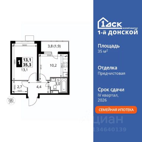Прямая продажа от застройщика! Жилой Комплекс класса Комфорт Плюс. Продаётся 1-к квартира номер 614 общей площадью 35.7 кв.м. на 9-м этаже 24 этажного здания. Без отделки. Цена с учётом скидки. Особенности квартиры: - МЦД-5 в пешей доступности - Квартал с собственной набережной - Свои 2 детских сада и школа - Организуем показ в удобное для вас время! - Линейная планировка - максимальная функциональность и удобство. - Гардеробная - удобство для хранения и организации вещей. - Ниша под шкаф - компактное и удобное место для вещей. - Лоджия - уютное место для отдыха и тишины. Квартира без отделки. Чистый холст для воплощения интерьера вашей мечты. Информация о комплексе: ЖК "1-й Донской" в 7 км от МКАД: гармония городского комфорта и природы. Квартиры на 2-3 стороны света, форма секций и разная этажность создают динамичную архитектуру. Тёплая палитра фасадов и подсветка подчеркивают образ. Рядом - Ермолинский парк, Видновский лесопарк и Жуковский парк. Природа воздействует на все уровни восприятия: от видов до звуков и ароматов. Идеальный баланс для жизни в гармонии с окружающей средой. Транспортная доступность: Комплекс удобно расположен в 7 км от МКАД по трассе М-4 Дон (через Видное). Расстояние до Каширского шоссе составляет 12 км. Добраться до метро и центра Москвы позволяет развитая сеть маршрутов общественного наземного транспорта. Действующая ж/д станция Калинина Павелецкого направления в 15-17 минутах ходьбы (МЦД-5 в 2025-2026 гг). Внутренняя инфраструктура: "1-й Донской": продуманная среда в развивающемся районе. На территории - муниципальные школа и 2 детских сада, поликлиника, торговый центр с площадью для мероприятий. Сеть пешеходных маршрутов ведёт к магазинам и кафе, отделённым от дорог зелёными фито-стенами. Сквозные подъезды с панорамным остеклением и входами с улицы и двора наполнены светом. Всё для комфортной жизни в шаговой доступности, от повседневных нужд до общественных пространств. Квартира без отделки - чистый холст для вашего интерьера.