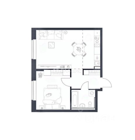 Здесь вы найдете изолированную жилую комнату и отдельную кухню.. Просторная гардеробная площадью 6 кв.м может быть использована по вашему усмотрению как кладовая или дополнительное место для хранения.