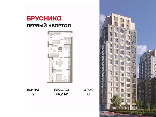 Двухуровневая квартира с кухней-гостиной и двумя спальнями в "Первом квартале". Особенности планировки: без отделки, двухуровневая, мастер-спальня, окна на две стороны, разнесённые спальни, терраса. Квартиру можно купить онлайн. В квартире выполнена отделка "под чистовую". Установлены окна с двойным стеклопакетом, радиаторы отопления с терморегуляторами. На полу цементно-песчаная стяжка. В квартиры заведены кабели для интернета и ТВ. Входная сейф-дверь не требует замены. Организован поквартирный учёт энергоресурсов (водоснабжение, отопление, электричество). Дом сдается во 2 квартале 2024 года. Проект "Первый квартал" строится в подмосковном городе "Видное" 6 км от МКАД. Рядом с проектом находится остановка общественного транспорта. Маршрутные такси едут до станций метро "Домодедовская", "Кантемировская", "Аннино". От ж/д ст. "Расторгуево" 30 минут до центра Москвы. Застройщик компания Брусника. Собственная инфраструктура "Первого квартала" включает в себя общеобразовательную школу, детский сад, а также магазины, предприятия услуг и офисные помещения, располагающиеся на первых этажах зданий. В шаговой доступности находятся: четыре школы, Видновская гимназия, начальная школа "Созвездие", супермаркеты "Пятерочка", "Перекресток" и "Виктория", рынок "Красный камень", бассейн "Дельфин". Объявление от застройщика. Ипотека, материнский капитал, военная ипотека. Обмен (или Trade-in) — один из способов. Обмен подойдёт, если вы хотите поменять старую квартиру на новую с большей или равной площадью. Получить одобрение ипотеки или рассрочку, а также осуществить обмен квартиры можно онлайн. Запишитесь на онлайн презентацию по телефону или на сайте. квартиры в нашей базе: ПК6-ГП6-6-6.5.4.