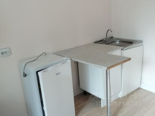 —функциональная планировка: комната-студия с кухонной зоной и выходом на застеклённый балкон с панорамными окнами, совмещённый санузел, прихожая. Площадь по ЕГРН — 26,4 кв.м. без учёта балкона.
