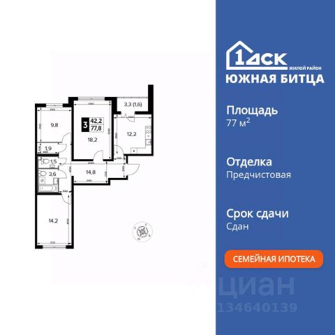Прямая продажа от застройщика! Семейный жилой район класса Комфорт Плюс Продаётся 4-к квартира номер 617 общей площадью 109.5 кв.м. на 18-м этаже 24 этажного здания. Предчистовая отделка. Цена с учётом скидки. Особенности квартиры: - Организуем показ в удобное для вас время! - Гостевой санузел - комфорт и удобство для ваших гостей. - Душ помимо ванной - дополнительное удобство для вашей семьи. - Раздельный санузел - больше удобства для всех членов семьи. - Просторная кухня - место для семейных ужинов и кулинарных экспериментов. - Гардеробная - удобство для хранения и организации вещей. - Ниша под шкаф - компактное и удобное место для вещей. - Лоджия - уютное место для отдыха и тишины. - Панорамное остекление лоджии - открывает вид на окружающий мир. Квартира с предчистовой отделкой. Вам не придется заниматься черновыми и трудоёмкими работы, а чистовую отделку и дизайн - сделайте на свой вкус. Информация о комплексе: ЖК "Южная Битца": безопасная территория без машин с продуманным зонированием. Тихие и игровые зоны разделены, дворы - безбарьерная среда для всех возрастов. Современные лифты и кладовые для порядка и уюта. Транспортная доступность: В 3 км от МКАД в нескольких минутах езды до трех станций метро: Аннино, Бульвар Дмитрия Донского, улица Старокочаловская и станции МЦД2 - ЖД Бутово. Внутренняя инфраструктура: Для жителей жилого района "Южная Битца" доступна развитая инфраструктура близлежащих московских районов Чертаново, Южное, Бирюлёво Западное, Северное Бутово и Южное Бутово. Множество образовательных учреждений, объекты здравоохранения, торговые и развлекательные центры, кинотеатры, кафе, рестораны, парки. Цена с учётом скидки. Купить квартиру в поселке Битца Московской области.