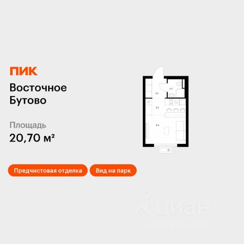 Продаётся 1-комн. квартира площадью 33,1 кв.м на 3 этаже 25 этажного дома (Корпус 55, Секция 1) проекта ПИК Восточное Бутово. Светлый просторный подъезд на уровне земли, функциональная планировка, большие окна, предчистовая отделка. Жилой квартал "Восточное Бутово" расположен в 5 км от МКАД по Симферопольскому шоссе, в Ленинском районе Московской области. Это экологически благоприятное место по соседству с Бутовским лесопарком. В 25 минутах на машине - станции метро и МЦД "Бутово". В "Восточном Бутово" уже открылись пять детских садов из десяти запланированных и одна школа из четырёх. Внутри квартала будет две поликлиники, одна из которых уже работает. В проекте два пешеходных бульвара - по одному из них уже можно гулять и кататься на велосипеде. В закрытых дворах-парках не будет автомобилей - мы построим многоуровневый паркинг, чтобы сделать район ещё более комфортным и безопасным для жителей. Артикул 1044067 (Застройщик ООО "Лотан")