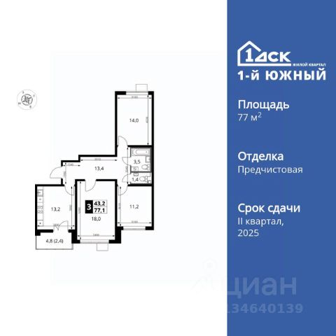 Прямая продажа от застройщика! Жилой Комплекс класса Комфорт Плюс. Продаётся 3-к квартира номер 594 общей площадью 84.2 кв.м. на 16-м этаже 25 этажного здания. Отделка Whitebox. Цена с учётом скидки. Особенности квартиры: - МЦД-5 в пешей доступности - Квартал с южным садом - Свои 3 детских сада и 2 большие школы - Просторная спальня, в которой можно разместить большую кровать. - Распашная планировка - отличное сочетание удобства и свободы. - Гостевой санузел - комфорт и удобство для ваших гостей. - Просторная кухня - место для семейных ужинов и кулинарных экспериментов. - Просторная мягкая зона - комфорт и уют для отдыха всей семьи. - Возможность добавить спальное место - дополнительный комфорт для гостей. - Гардеробная - удобство для хранения и организации вещей. - Ниша под шкаф - компактное и удобное место для вещей. - Лоджия - уютное место для отдыха и тишины. Квартира с предчистовой отделкой (White box). Вам не придется заниматься черновыми и трудоёмкими работы, а чистовую отделку и дизайн - сделайте на свой вкус. Информация о комплексе: Одно из преимуществ проектов 1- ДСК большие застекленные лоджии. Другое преимущество честный евро-формат. Во всем проекте предусмотрена система Умный дом. В состав устанавливаемого пакета устройств входит: WiFi реле для управления группами потребителей, беспроводной кран перекрытия с эл. приводом, беспроводной сенсор протечки, Яндекс Станция Мини. Его расположение можно назвать удачным за счет транспортной доступности и близости к природным объектам. По соседству лес, а в каждом дворе плодовые деревья. Весной квартал окутывает бело-розовое облако: это цветут яблони, груши, сливы. К августу в воздух наполняется ароматом созревших плодов. Зимой среди покрытых инеем деревьев протянулась лыжня. Транспортная доступность: - Общественный транспорт: Действующая ж/д станция Булатниково (в перспективе будущая МДЦ D5) в пешей доступности, всего 10-12 минут. - Личный автотранспорт: Удобный выезд на трассу М4-Дон в сторону Москвы и области 850 м, до МКАД - 1 км Внутренняя инфраструктура: Красивые продуманные подъезды - еще одно преимущество проекта 1-й Южный. Вход в сквозные подъезды есть и с улицы, и со двора. Благодаря сплошному остеклению в них всегда светло и уютно. Подъезды расположены на уровне земли, поэтому и молодым родителям с коляской, и жильцам с ограниченными возможностями вход и выход неудобств не доставят. В помещении предусмотрено место под стойку ресепшен с выводом инженерных сетей. Если жильцы решат на общем собрании, что необходим охранник или консьерж, организовать для них рабочее место можно быстро и с минимальными затратами. В подъездах предусмотрены уборные для детей и взрослых. Колясочные в каждом подъезде позволяют поддерживать порядок и чистоту на этажах. На случай прогулки с четвероногим питомцем в непогоду в подъездах устроены лапомойки. Во дворах и на общественных территориях 1-ого Южного столько всего интересного для юных обитателей. Собственные 3 Продается квартира в поселке Ленинский Московской области.