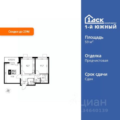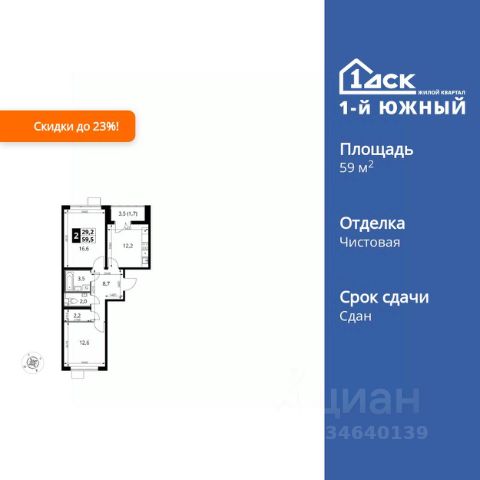Прямая продажа от застройщика! Жилой Комплекс класса Комфорт Плюс. Продаётся 2-к квартира номер 619 общей площадью 61.4 кв.м. на 19-м этаже 25 этажного здания. Отделка Whitebox. Цена с учётом скидки. Особенности квартиры: - МЦД-5 в пешей доступности - Квартал с южным садом - Свои 3 детских сада и 2 большие школы - Просторная спальня, в которой можно разместить большую кровать. - Угловая планировка - больше пространства для ваших идей. - Гостевой санузел - комфорт и удобство для ваших гостей. - Раздельный санузел - больше удобства для всех членов семьи. - Просторная кухня - место для семейных ужинов и кулинарных экспериментов. - Просторная мягкая зона - комфорт и уют для отдыха всей семьи. - Возможность добавить спальное место - дополнительный комфорт для гостей. - Гардеробная - удобство для хранения и организации вещей. - Ниша под шкаф - компактное и удобное место для вещей. - Просторная лоджия - идеальное место для уютных вечеров. Квартира с предчистовой отделкой (White box). Вам не придется заниматься черновыми и трудоёмкими работы, а чистовую отделку и дизайн - сделайте на свой вкус. Информация о комплексе: Одно из преимуществ проектов 1- ДСК большие застекленные лоджии. Другое преимущество честный евро-формат. Во всем проекте предусмотрена система Умный дом. В состав устанавливаемого пакета устройств входит: WiFi реле для управления группами потребителей, беспроводной кран перекрытия с эл. приводом, беспроводной сенсор протечки, Яндекс Станция Мини. Его расположение можно назвать удачным за счет транспортной доступности и близости к природным объектам. По соседству лес, а в каждом дворе плодовые деревья. Весной квартал окутывает бело-розовое облако: это цветут яблони, груши, сливы. К августу в воздух наполняется ароматом созревших плодов. Зимой среди покрытых инеем деревьев протянулась лыжня. Транспортная доступность: - Общественный транспорт: Действующая ж/д станция Булатниково (в перспективе будущая МДЦ D5) в пешей доступности, всего 10-12 минут. - Личный автотранспорт: Удобный выезд на трассу М4-Дон в сторону Москвы и области 850 м, до МКАД - 1 км Внутренняя инфраструктура: Красивые продуманные подъезды - еще одно преимущество проекта 1-й Южный. Вход в сквозные подъезды есть и с улицы, и со двора. Благодаря сплошному остеклению в них всегда светло и уютно. Подъезды расположены на уровне земли, поэтому и молодым родителям с коляской, и жильцам с ограниченными возможностями вход и выход неудобств не доставят. В помещении предусмотрено место под стойку ресепшен с выводом инженерных сетей. Если жильцы решат на общем собрании, что необходим охранник или консьерж, организовать для них рабочее место можно быстро и с минимальными затратами. В подъездах предусмотрены уборные для детей и взрослых. Колясочные в каждом подъезде позволяют поддерживать порядок и чистоту на этажах. На случай прогулки с четвероногим питомцем в непогоду в подъездах устроены лапомойки. Во дворах и на общественных территориях 1- Продается квартира в поселке Ленинский Московской области.