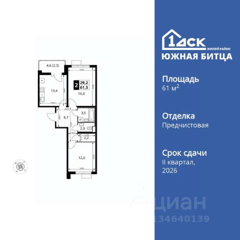 Прямая продажа от застройщика! Семейный жилой район класса Комфорт Плюс Продаётся 2-к квартира номер 457 общей площадью 59.5 кв.м. на 24-м этаже 24 этажного здания. Отделка Whitebox. Цена с учётом скидки. Особенности квартиры: - Раздельный санузел - больше удобства для всех членов семьи. - Просторная кухня - место для семейных ужинов и кулинарных экспериментов. - Гардеробная - удобство для хранения и организации вещей. - Ниша под шкаф - компактное и удобное место для вещей. - Лоджия - уютное место для отдыха и тишины. - Панорамное остекление лоджии - открывает вид на окружающий мир. Квартира с предчистовой отделкой (White box). Вам не придется заниматься черновыми и трудоёмкими работы, а чистовую отделку и дизайн - сделайте на свой вкус. Информация о комплексе: Сочетание свободного перемещения по внутреннней территории без машин и ощущения абсолютной безопасности благодаря надежным ограждениям - вот что отличает ЖК Южная Битца. На территории комплекса созданы все условия как для активного образа жизни, так и для спокойного времяпрепровождения. Свободно перемещайтесь по внутренней территории в безбарьерной среде! Продуманное зонирование во дворах позволяет отделить тихие зоны для родителей со спящими младенцами и тех, кто хочет почитать на свежем воздухе, от шумных игровых зон. Игровые зоны учитывают возраст детей. Площадки для детей старшего возраста вынесены за пределы дворов. Ощущение уютного дома должно начинаться с подъезда. Мы постарались предусмотреть все нюансы, чтобы наши лифты отвечали самым строгим современным требованиям. А наличие кладовых позволит вам поддерживать идеальный порядок и уют в вашей квартире! Транспортная доступность: В 3 км от МКАД в нескольких минутах езды до трех станций метро: Аннино, Бульвар Дмитрия Донского, улица Старокочаловская и станции МЦД2 - жд Бутово. Внутренняя инфраструктура: Для жителей жилого района "Южная Битца" доступна развитая инфраструктура близлежащих московских районов Чертаново, Южное, Бирюлёво Западное, Северное Бутово и Южное Бутово. Множество образовательных учреждений, объекты здравоохранения, торговые и развлекательные центры, кинотеатры, кафе, рестораны, парки.