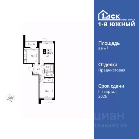 Прямая продажа от застройщика! Жилой Комплекс класса Комфорт Плюс. Продаётся 2-к квартира номер 758 общей площадью 59.5 кв.м. на 25-м этаже 25 этажного дома. Отделка Whitebox. Цена с учётом скидки! Особенности квартиры: - МЦД-5 в пешей доступности - Квартал с южным садом - Свои 3 детских сада и 2 большие школы - Просторная спальня, в которой можно разместить большую кровать. - Распашная планировка - отличное сочетание удобства и свободы. - Гостевой санузел - комфорт и удобство для ваших гостей. - Раздельный санузел - больше удобства для всех членов семьи. - Увеличенная высота потолков - ощущение простора и легкости. - Просторная кухня - место для семейных ужинов и кулинарных экспериментов. - Просторная мягкая зона - комфорт и уют для отдыха всей семьи. - Возможность добавить спальное место - дополнительный комфорт для гостей. - Гардеробная - удобство для хранения и организации вещей. - Ниша под шкаф - компактное и удобное место для вещей. - Лоджия - уютное место для отдыха и тишины. Квартира с предчистовой отделкой (White box). Вам не придется заниматься черновыми и трудоёмкими работы, а чистовую отделку и дизайн - сделайте на свой вкус. Информация о комплексе: Одно из преимуществ проектов 1- ДСК большие застекленные лоджии. Другое преимущество честный евро-формат. Во всем проекте предусмотрена система Умный дом. В состав устанавливаемого пакета устройств входит: WiFi реле для управления группами потребителей, беспроводной кран перекрытия с эл. приводом, беспроводной сенсор протечки, Яндекс Станция Мини. Его расположение можно назвать удачным за счет транспортной доступности и близости к природным объектам. По соседству лес, а в каждом дворе плодовые деревья. Весной квартал окутывает бело-розовое облако: это цветут яблони, груши, сливы. К августу в воздух наполняется ароматом созревших плодов. Зимой среди покрытых инеем деревьев протянулась лыжня. Транспортная доступность: - Общественный транспорт: Действующая ж/д станция Булатниково (в перспективе будущая МДЦ D5) в пешей доступности, всего 10-12 минут. - Личный автотранспорт: Удобный выезд на трассу М4-Дон в сторону Москвы и области 850 м, до МКАД - 1 км Внутренняя инфраструктура: Красивые продуманные подъезды - еще одно преимущество проекта 1-й Южный. Вход в сквозные подъезды есть и с улицы, и со двора. Благодаря сплошному остеклению в них всегда светло и уютно. Подъезды расположены на уровне земли, поэтому и молодым родителям с коляской, и жильцам с ограниченными возможностями вход и выход неудобств не доставят. В помещении предусмотрено место под стойку ресепшен с выводом инженерных сетей. Если жильцы решат на общем собрании, что необходим охранник или консьерж, организовать для них рабочее место можно быстро и с минимальными затратами. В подъездах предусмотрены уборные для детей и взрослых. Колясочные в каждом подъезде позволяют поддерживать порядок и чистоту на этажах. На случай прогулки с четвероногим питомцем в непогоду в подъездах устроены