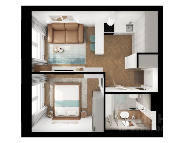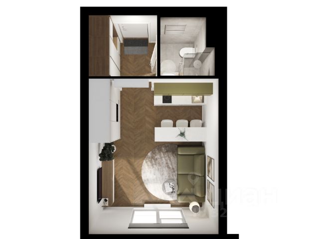 - планировка: кухня-гостиная (15,6 кв.м.), прихожая (3 кв.м.), санузел (2,6 кв.м.).