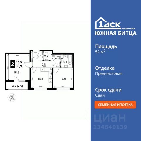 Прямая продажа от застройщика! Семейный жилой район класса Комфорт Плюс Продаётся 2-к квартира номер 159 общей площадью 52.7 кв.м. на 21-м этаже 22 этажного здания. Чистовая отделка. Цена с учётом скидки. Особенности квартиры: - Линейная планировка - максимальная функциональность и удобство. - Раздельный санузел - больше удобства для всех членов семьи. - Просторная кухня - место для семейных ужинов и кулинарных экспериментов. - Гардеробная - удобство для хранения и организации вещей. - Лоджия - уютное место для отдыха и тишины. - Панорамное остекление лоджии - открывает вид на окружающий мир. Информация о комплексе: Сочетание свободного перемещения по внутреннней территории без машин и ощущения абсолютной безопасности благодаря надежным ограждениям - вот что отличает ЖК Южная Битца. На территории комплекса созданы все условия как для активного образа жизни, так и для спокойного времяпрепровождения. Свободно перемещайтесь по внутренней территории в безбарьерной среде! Продуманное зонирование во дворах позволяет отделить тихие зоны для родителей со спящими младенцами и тех, кто хочет почитать на свежем воздухе, от шумных игровых зон. Игровые зоны учитывают возраст детей. Площадки для детей старшего возраста вынесены за пределы дворов. Ощущение уютного дома должно начинаться с подъезда. Мы постарались предусмотреть все нюансы, чтобы наши лифты отвечали самым строгим современным требованиям. А наличие кладовых позволит вам поддерживать идеальный порядок и уют в вашей квартире! Транспортная доступность: В 3 км от МКАД в нескольких минутах езды до трех станций метро: Аннино, Бульвар Дмитрия Донского, улица Старокочаловская и станции МЦД2 - жд Бутово. Внутренняя инфраструктура: Для жителей жилого района "Южная Битца" доступна развитая инфраструктура близлежащих московских районов Чертаново, Южное, Бирюлёво Западное, Северное Бутово и Южное Бутово. Множество образовательных учреждений, объекты здравоохранения, торговые и развлекательные центры, кинотеатры, кафе, рестораны, парки.