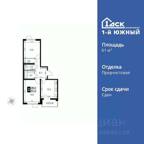 Прямая продажа от застройщика! Жилой Комплекс класса Комфорт Плюс. Продаётся 3-к квартира номер 751 общей площадью 63.1 кв.м. на 24-м этаже 25 этажного здания. Предчистовая отделка. Цена с учётом скидки. Особенности квартиры: - МЦД-5 в пешей доступности - Квартал с южным садом - Свои 3 детских сада и 2 большие школы - Организуем показ в удобное для вас время! - Угловая планировка - больше пространства для ваших идей. - Окно в ванной - натуральное освещение для уюта и комфорта. - Гостевой санузел - комфорт и удобство для ваших гостей. - Раздельный санузел - больше удобства для всех членов семьи. - Евроформат - просторное и удобное жилье с отличной планировкой. - Просторная мягкая зона - комфорт и уют для отдыха всей семьи. - Кухня-гостиная - идеальное пространство для встреч с близкими. - Возможность добавить спальное место - дополнительный комфорт для гостей. - Гардеробная - удобство для хранения и организации вещей. - Просторная лоджия - идеальное место для уютных вечеров. Квартира с предчистовой отделкой. Вам не придется заниматься черновыми и трудоёмкими работы, а чистовую отделку и дизайн - сделайте на свой вкус. Информация о комплексе: ЖК от 1-го ДСК: евро формат, большие застеклённые лоджии и умный дом. Управляйте светом и техникой через Яндекс.Станцию, защита от протечек. Удачная локация: транспортная доступность и природа рядом. В каждом дворе - плодовые деревья, весной цветут яблони и груши, зимой - лыжня среди заснеженного леса. Транспортная доступность: - Общественный транспорт: Действующая ж/д станция Булатниково (в перспективе будущая МДЦ D5) в пешей доступности, всего 10-12 минут. - Личный автотранспорт: Удобный выезд на трассу М4-Дон в сторону Москвы и области 850 м, до МКАД - 1 км Внутренняя инфраструктура: "1-й Южный": продуманные подъезды с панорамным остеклением и входами с улицы и двора. Безбарьерная среда для родителей с колясками и маломобильных жителей. В каждом подъезде - колясочные, лапомойки, санузлы, место для консьержа. На территории: 3 детских сада и 2 школы под окнами, пешеходный бульвар-дендрарий для прогулок, центральная площадь для мероприятий. Всё для комфортной жизни, общения и активностей в шаговой доступности. Квартира с предчистовой отделкой - ваш дизайн без черновых работ
