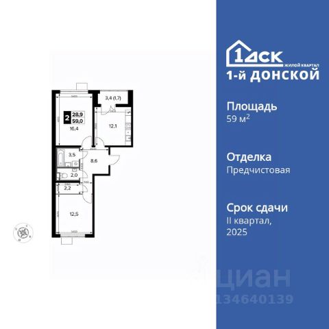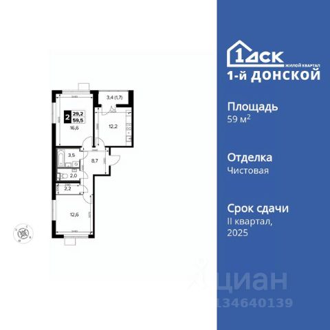 Продаётся 3-к квартира номер 198 общей площадью 76.8 кв.м. на 6-м этаже 24 этажного дома. Чистовая отделка. Дом сдан.