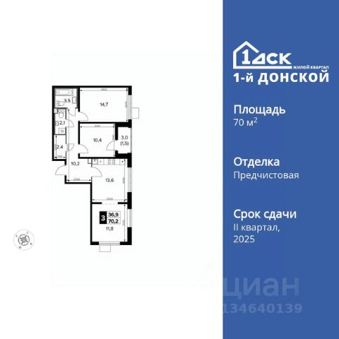 Прямая продажа от застройщика! Жилой Комплекс класса Комфорт Плюс. Продаётся 3-к квартира номер 320 общей площадью 69.3 кв.м. на 7-м этаже 24 этажного здания. Отделка Whitebox. Цена с учётом скидки. Особенности квартиры: - МЦД-5 в пешей доступности - Квартал с собственной набережной - Свои 2 детских сада и школа - Просторная спальня, в которой можно разместить большую кровать. - Гостевой санузел - комфорт и удобство для ваших гостей. - Евроформат - просторное и удобное жилье с отличной планировкой. - Просторная кухня - место для семейных ужинов и кулинарных экспериментов. - Просторная мягкая зона - комфорт и уют для отдыха всей семьи. - Возможность добавить спальное место - дополнительный комфорт для гостей. - Гардеробная - удобство для хранения и организации вещей. - Лоджия - уютное место для отдыха и тишины. Квартира с предчистовой отделкой (White box). Вам не придется заниматься черновыми и трудоёмкими работы, а чистовую отделку и дизайн - сделайте на свой вкус. Информация о комплексе: Комплекс 1-й Донской расположен в 7 км от МКАД по трассе М-4 Дон. В нем сочетаются все плюсы комфортной городской среды и природного окружения. В проекте достаточно большой процент квартир, выходящих на 2-3 стороны света. Секции-маяки формируют у зданий визуальную L-форму, что придает застройке структуру и ритмику объемов. На ощущение динамики работает и разная этажность зданий. Теплая цветовая палитра фасадов отражает природу Дона. Вечерами дома преображаются благодаря архитектурной подсветке, выгодно выделяясь на городском фоне. Природа оказывает положительное влияние на человека на всех уровнях восприятия: через зрение, запахи, звуки, тактильные ощущения. Неподалеку от ЖК Первый Донской: Ермолинский парк, Видновский лесопарк, Жуковский парк Транспортная доступность: Комплекс удобно расположен в 7 км от МКАД по трассе М-4 Дон (через Видное). Расстояние до Каширского шоссе составляет 12 км. Добраться до метро и центра Москвы позволяет развитая сеть маршрутов общественного наземного транспорта. Действующая ж/д станция Калинина Павелецкого направления в 15-17 минутах ходьбы (МЦД-5 в 2025-2026 гг). Внутренняя инфраструктура: Проект 1-й Донской соседствует с бурно развивающимся районом, основная инфраструктура которого уже сложилась. В строительстве современных жилых комплексов в округе есть свои плюсы: здесь формируется продуманная и комфортная городская среда. Что касается внутренней инфраструктуры, на территории квартала будут расположены собственные муниципальные 2 детских садика и школа, которые помогут совместить приятное с полезным. Территория комплекса пронизана целой сетью живописных пешеходных маршрутов, позволяющих попасть в любой уголок района. Основные пути, как водится, "торговые". Они проходят вдоль магазинов, кафе и других представителей коммерции и отделяются от проезжей части зеленой "фито" - стеной. Среди крупных социальных объектов предусмотрены своя поликлиника и торговый центр с примыкающей площадью