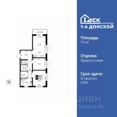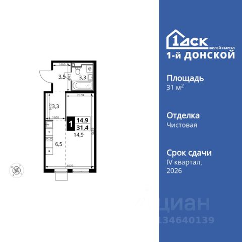 УСПЕЙ ПО СЕМЕЙНОЙ ИПОТЕКЕ БЕЗ НАЦЕНКИ! Квартиры с отделкой от 30 000 рублей в месяц! Прямая продажа от застройщика! Жилой Комплекс класса Комфорт Плюс. Продаётся квартира-студия номер 158 общей площадью 31.5 кв.м. на 17-м этаже 24 этажного здания. Чистовая отделка. Особенности квартиры: - МЦД-5 в пешей доступности - Квартал с собственной набережной - Свои 2 детских сада и школа - Линейная планировка - максимальная функциональность и удобство. - Линейная кухня - функциональность и практичность в одном решении. - Гардеробная - удобство для хранения и организации вещей. - Ниша под шкаф - компактное и удобное место для вещей. Информация о комплексе: Комплекс 1-й Донской расположен в 7 км от МКАД по трассе М-4 Дон. В нем сочетаются все плюсы комфортной городской среды и природного окружения. В проекте достаточно большой процент квартир, выходящих на 2-3 стороны света. Секции-маяки формируют у зданий визуальную L-форму, что придает застройке структуру и ритмику объемов. На ощущение динамики работает и разная этажность зданий. Теплая цветовая палитра фасадов отражает природу Дона. Вечерами дома преображаются благодаря архитектурной подсветке, выгодно выделяясь на городском фоне. Природа оказывает положительное влияние на человека на всех уровнях восприятия: через зрение, запахи, звуки, тактильные ощущения. Неподалеку от ЖК Первый Донской: Ермолинский парк, Видновский лесопарк, Жуковский парк Транспортная доступность: Комплекс удобно расположен в 7 км от МКАД по трассе М-4 Дон (через Видное). Расстояние до Каширского шоссе составляет 12 км. Добраться до метро и центра Москвы позволяет развитая сеть маршрутов общественного наземного транспорта. Действующая ж/д станция Калинина Павелецкого направления в 15-17 минутах ходьбы (МЦД-5 в 2025-2026 гг). Внутренняя инфраструктура: Проект 1-й Донской соседствует с бурно развивающимся районом, основная инфраструктура которого уже сложилась. В строительстве современных жилых комплексов в округе есть свои плюсы: здесь формируется продуманная и комфортная городская среда. Что касается внутренней инфраструктуры, на территории квартала будут расположены собственные муниципальные 2 детских садика и школа, которые помогут совместить приятное с полезным. Территория комплекса пронизана целой сетью живописных пешеходных маршрутов, позволяющих попасть в любой уголок района. Основные пути, как водится, "торговые". Они проходят вдоль магазинов, кафе и других представителей коммерции и отделяются от проезжей части зеленой "фито" - стеной. Среди крупных социальных объектов предусмотрены своя поликлиника и торговый центр с примыкающей площадью для общественных мероприятий. Уют начинается с продуманного подъезда. Сквозные подъезды наполнены светом благодаря сплошному остеклению. Вход в них есть и с улицы, и со двора.