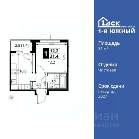 Продаётся с кладовой. Квартира с кухней-гостиной и одной спальней в "Первом квартале". Особенности планировки: без отделки, двухуровневая, тёплая лоджия, лоджия, терраса, балкон, терраса на крыше. Квартиру можно купить онлайн. В квартире выполнена отделка "под чистовую". Установлены окна с двойным стеклопакетом, радиаторы отопления с терморегуляторами. На полу цементно-песчаная стяжка. В квартиры заведены кабели для интернета и ТВ. Входная сейф-дверь не требует замены. Организован поквартирный учёт энергоресурсов (водоснабжение, отопление, электричество). Дом сдается во 2 квартале 2024 года. Проект "Первый квартал" строится в подмосковном городе "Видное" 6 км от МКАД. Рядом с проектом находится остановка общественного транспорта. Маршрутные такси едут до станций метро "Домодедовская", "Кантемировская", "Аннино". От ж/д ст. "Расторгуево" 30 минут до центра Москвы. Застройщик компания Брусника. Собственная инфраструктура "Первого квартала" включает в себя общеобразовательную школу, детский сад, а также магазины, предприятия услуг и офисные помещения, располагающиеся на первых этажах зданий. В шаговой доступности находятся: четыре школы, Видновская гимназия, начальная школа "Созвездие", супермаркеты "Пятерочка", "Перекресток" и "Виктория", рынок "Красный камень", бассейн "Дельфин". Объявление от застройщика. Ипотека, материнский капитал, военная ипотека. Обмен (или Trade-in) — один из способов. Обмен подойдёт, если вы хотите поменять старую квартиру на новую с большей или равной площадью. Получить одобрение ипотеки или рассрочку, а также осуществить обмен квартиры можно онлайн. Запишитесь на онлайн презентацию по телефону или на сайте. ОБЪЯВЛЕНИЕ ОТ ЗАСТРОЙЩИКА. Покупка квартиры защищена банком. Квартиру можно купить онлайн. ЖК "Первый квартал" расположен в городе Видное Московской области. Это 6 домов переменной этажности от 5 до 14 этажей с закрытыми дворами без машин, детскими и спортивными площадками. Проект застройщика Брусника находится в Ленинском районе в 6 км от МКАД, рядом с Ермолинским парком и рекой Купелинка. До аэропорта Домодедово около получаса езды на автомобиле. В районе уже сформированная инфраструктура: четыре детских сада, две школы, торговые центры, продуктовые магазины, остановки общественного транспорта. Рядом с ЖК "Первый квартал" находится конечная остановка маршрутных такси. От неё можно добраться до четырех станций метро — "Домодедовская", "Орехово", "Аннино", "Красногвардейская", и железнодорожной станции "Расторгуево". В проекте развития территории — строительство отдельного выезда на М4 Дон. В перспективе в жилом районе будет собственный детский сад, школа, поликлиника и два крытых паркинга. Вблизи "Первого квартала" — два развитых жилых района: микрорайон "Купелинка", ЖК "Эко Видное", ЖК "Видный". 1-комнатная квартира в ЖК "Первый квартал" в Видном — это квартира с объединённой кухней-гостиной и отдельной спальней. Однокомнатная может быть укомплектована тёплой лоджией, где