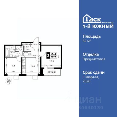 Прямая продажа от застройщика! Жилой Комплекс класса Комфорт Плюс. Продаётся 2-к квартира номер 480 общей площадью 52.7 кв.м. на 15-м этаже 24 этажного здания. Предчистовая отделка. Цена с учётом скидки. Особенности квартиры: - МЦД-5 в пешей доступности - Квартал с южным садом - Свои 3 детских сада и 2 большие школы - Организуем показ в удобное для вас время! - Линейная планировка - максимальная функциональность и удобство. - Раздельный санузел - больше удобства для всех членов семьи. - Линейная кухня - функциональность и практичность в одном решении. - Гардеробная - удобство для хранения и организации вещей. - Лоджия - уютное место для отдыха и тишины. Квартира с предчистовой отделкой. Вам не придется заниматься черновыми и трудоёмкими работы, а чистовую отделку и дизайн - сделайте на свой вкус. Информация о комплексе: ЖК от 1-го ДСК: евро формат, большие застеклённые лоджии и умный дом. Управляйте светом и техникой через Яндекс.Станцию, защита от протечек. Удачная локация: транспортная доступность и природа рядом. В каждом дворе - плодовые деревья, весной цветут яблони и груши, зимой - лыжня среди заснеженного леса. Транспортная доступность: - Общественный транспорт: Действующая ж/д станция Булатниково (в перспективе будущая МДЦ D5) в пешей доступности, всего 10-12 минут. - Личный автотранспорт: Удобный выезд на трассу М4-Дон в сторону Москвы и области 850 м, до МКАД - 1 км Внутренняя инфраструктура: "1-й Южный": продуманные подъезды с панорамным остеклением и входами с улицы и двора. Безбарьерная среда для родителей с колясками и маломобильных жителей. В каждом подъезде - колясочные, лапомойки, санузлы, место для консьержа. На территории: 3 детских сада и 2 школы под окнами, пешеходный бульвар-дендрарий для прогулок, центральная площадь для мероприятий. Всё для комфортной жизни, общения и активностей в шаговой доступности. Квартира с предчистовой отделкой - ваш дизайн без черновых работ