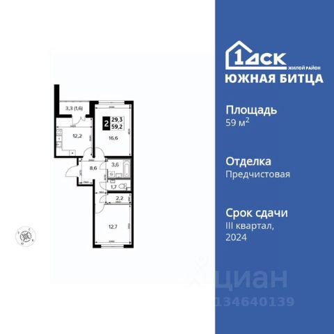 Прямая продажа от застройщика! Семейный жилой район класса Комфорт Плюс Продаётся 2-к квартира номер 1203 общей площадью 65.4 кв.м. на 3-м этаже 20 этажного здания. Отделка Whitebox. Цена с учётом скидки. Особенности квартиры: - Гостевой санузел - комфорт и удобство для ваших гостей. - Просторная кухня - место для семейных ужинов и кулинарных экспериментов. Квартира с предчистовой отделкой (White box). Вам не придется заниматься черновыми и трудоёмкими работы, а чистовую отделку и дизайн - сделайте на свой вкус. Информация о комплексе: Сочетание свободного перемещения по внутреннней территории без машин и ощущения абсолютной безопасности благодаря надежным ограждениям - вот что отличает ЖК Южная Битца. На территории комплекса созданы все условия как для активного образа жизни, так и для спокойного времяпрепровождения. Свободно перемещайтесь по внутренней территории в безбарьерной среде! Продуманное зонирование во дворах позволяет отделить тихие зоны для родителей со спящими младенцами и тех, кто хочет почитать на свежем воздухе, от шумных игровых зон. Игровые зоны учитывают возраст детей. Площадки для детей старшего возраста вынесены за пределы дворов. Ощущение уютного дома должно начинаться с подъезда. Мы постарались предусмотреть все нюансы, чтобы наши лифты отвечали самым строгим современным требованиям. А наличие кладовых позволит вам поддерживать идеальный порядок и уют в вашей квартире! Транспортная доступность: В 3 км от МКАД в нескольких минутах езды до трех станций метро: Аннино, Бульвар Дмитрия Донского, улица Старокочаловская и станции МЦД2 - жд Бутово. Внутренняя инфраструктура: Для жителей жилого района "Южная Битца" доступна развитая инфраструктура близлежащих московских районов Чертаново, Южное, Бирюлёво Западное, Северное Бутово и Южное Бутово. Множество образовательных учреждений, объекты здравоохранения, торговые и развлекательные центры, кинотеатры, кафе, рестораны, парки.