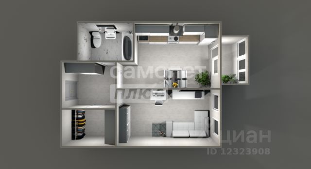 - Планировка: комната, кухня-ниша, санузел,
