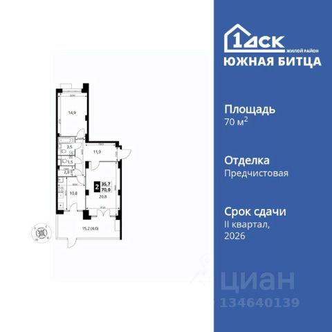Прямая продажа от застройщика! Семейный жилой район класса Комфорт Плюс Продаётся 2-к квартира номер 159 общей площадью 52.7 кв.м. на 21-м этаже 22 этажного дома. Чистовая отделка. Цена с учётом скидки! Особенности квартиры: - Линейная планировка - максимальная функциональность и удобство. - Раздельный санузел - больше удобства для всех членов семьи. - Просторная кухня - место для семейных ужинов и кулинарных экспериментов. - Гардеробная - удобство для хранения и организации вещей. - Лоджия - уютное место для отдыха и тишины. - Панорамное остекление лоджии - открывает вид на окружающий мир. Информация о комплексе: Сочетание свободного перемещения по внутреннней территории без машин и ощущения абсолютной безопасности благодаря надежным ограждениям - вот что отличает ЖК Южная Битца. На территории комплекса созданы все условия как для активного образа жизни, так и для спокойного времяпрепровождения. Свободно перемещайтесь по внутренней территории в безбарьерной среде! Продуманное зонирование во дворах позволяет отделить тихие зоны для родителей со спящими младенцами и тех, кто хочет почитать на свежем воздухе, от шумных игровых зон. Игровые зоны учитывают возраст детей. Площадки для детей старшего возраста вынесены за пределы дворов. Ощущение уютного дома должно начинаться с подъезда. Мы постарались предусмотреть все нюансы, чтобы наши лифты отвечали самым строгим современным требованиям. А наличие кладовых позволит вам поддерживать идеальный порядок и уют в вашей квартире! Транспортная доступность: В 3 км от МКАД в нескольких минутах езды до трех станций метро: Аннино, Бульвар Дмитрия Донского, улица Старокочаловская и станции МЦД2 - жд Бутово. Внутренняя инфраструктура: Для жителей жилого района "Южная Битца" доступна развитая инфраструктура близлежащих московских районов Чертаново, Южное, Бирюлёво Западное, Северное Бутово и Южное Бутово. Множество образовательных учреждений, объекты здравоохранения, торговые и развлекательные центры, кинотеатры, кафе, рестораны, парки. Продам квартиру первичка в поселке Битца Московской области.