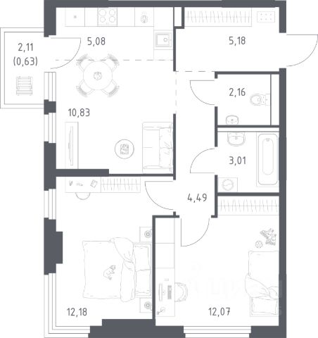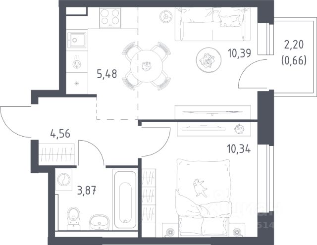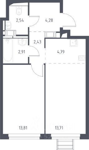 Предлагается 2-комнатная квартира комфорт-класса площадью 53,81 кв.м в корпусе 19 на 9-м этаже, в жилом комплексе Пригород Лесное.