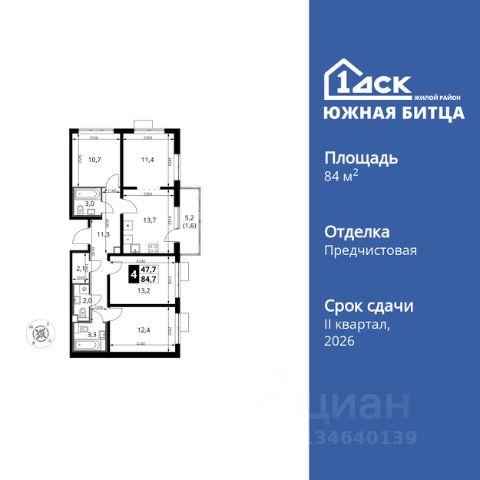 Прямая продажа от застройщика! Семейный жилой район класса Комфорт Плюс Продаётся 2-к квартира номер 67 общей площадью 44.4 кв.м. на 11-м этаже 22 этажного здания. Отделка Whitebox. Особенности квартиры: - Линейная планировка - максимальная функциональность и удобство. - Увеличенное количество окон - дополнительное освещение и свежий воздух. - Гостевой санузел - комфорт и удобство для ваших гостей. - Раздельный санузел - больше удобства для всех членов семьи. - Евроформат - просторное и удобное жилье с отличной планировкой. - Ниша под шкаф - компактное и удобное место для вещей. - Лоджия - уютное место для отдыха и тишины. Квартира с предчистовой отделкой (White box). Вам не придется заниматься черновыми и трудоёмкими работы, а чистовую отделку и дизайн - сделайте на свой вкус. Информация о комплексе: Сочетание свободного перемещения по внутреннней территории без машин и ощущения абсолютной безопасности благодаря надежным ограждениям - вот что отличает ЖК Южная Битца. На территории комплекса созданы все условия как для активного образа жизни, так и для спокойного времяпрепровождения. Свободно перемещайтесь по внутренней территории в безбарьерной среде! Продуманное зонирование во дворах позволяет отделить тихие зоны для родителей со спящими младенцами и тех, кто хочет почитать на свежем воздухе, от шумных игровых зон. Игровые зоны учитывают возраст детей. Площадки для детей старшего возраста вынесены за пределы дворов. Ощущение уютного дома должно начинаться с подъезда. Мы постарались предусмотреть все нюансы, чтобы наши лифты отвечали самым строгим современным требованиям. А наличие кладовых позволит вам поддерживать идеальный порядок и уют в вашей квартире! Транспортная доступность: В 3 км от МКАД в нескольких минутах езды до трех станций метро: Аннино, Бульвар Дмитрия Донского, улица Старокочаловская и станции МЦД2 - жд Бутово. Внутренняя инфраструктура: Для жителей жилого района "Южная Битца" доступна развитая инфраструктура близлежащих московских районов Чертаново, Южное, Бирюлёво Западное, Северное Бутово и Южное Бутово. Множество образовательных учреждений, объекты здравоохранения, торговые и развлекательные центры, кинотеатры, кафе, рестораны, парки.