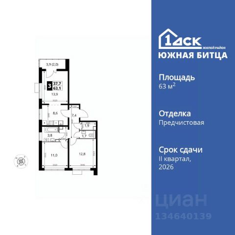 Прямая продажа от застройщика! Семейный жилой район класса Комфорт Плюс Продаётся 3-к квартира номер 752 общей площадью 63.6 кв.м. на 17-м этаже 22 этажного здания. Отделка Whitebox. Особенности квартиры: - Распашная планировка - отличное сочетание удобства и свободы. - Окно в ванной - натуральное освещение для уюта и комфорта. - Увеличенное количество окон - дополнительное освещение и свежий воздух. - Гостевой санузел - комфорт и удобство для ваших гостей. - Раздельный санузел - больше удобства для всех членов семьи. - Гардеробная - удобство для хранения и организации вещей. - Лоджия - уютное место для отдыха и тишины. Квартира с предчистовой отделкой (White box). Вам не придется заниматься черновыми и трудоёмкими работы, а чистовую отделку и дизайн - сделайте на свой вкус. Информация о комплексе: Сочетание свободного перемещения по внутреннней территории без машин и ощущения абсолютной безопасности благодаря надежным ограждениям - вот что отличает ЖК Южная Битца. На территории комплекса созданы все условия как для активного образа жизни, так и для спокойного времяпрепровождения. Свободно перемещайтесь по внутренней территории в безбарьерной среде! Продуманное зонирование во дворах позволяет отделить тихие зоны для родителей со спящими младенцами и тех, кто хочет почитать на свежем воздухе, от шумных игровых зон. Игровые зоны учитывают возраст детей. Площадки для детей старшего возраста вынесены за пределы дворов. Ощущение уютного дома должно начинаться с подъезда. Мы постарались предусмотреть все нюансы, чтобы наши лифты отвечали самым строгим современным требованиям. А наличие кладовых позволит вам поддерживать идеальный порядок и уют в вашей квартире! Транспортная доступность: В 3 км от МКАД в нескольких минутах езды до трех станций метро: Аннино, Бульвар Дмитрия Донского, улица Старокочаловская и станции МЦД2 - жд Бутово. Внутренняя инфраструктура: Для жителей жилого района "Южная Битца" доступна развитая инфраструктура близлежащих московских районов Чертаново, Южное, Бирюлёво Западное, Северное Бутово и Южное Бутово. Множество образовательных учреждений, объекты здравоохранения, торговые и развлекательные центры, кинотеатры, кафе, рестораны, парки.