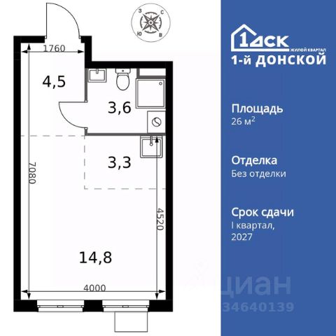 Прямая продажа от застройщика! Жилой Комплекс класса Комфорт Плюс. Продаётся квартира-студия номер 155 общей площадью 26.2 кв.м. на 16-м этаже 24 этажного дома. Без отделки. Цена с учётом скидки! Особенности квартиры: - МЦД-5 в пешей доступности - Квартал с собственной набережной - Свои 2 детских сада и школа - Линейная планировка - максимальная функциональность и удобство. Информация о комплексе: Комплекс 1-й Донской расположен в 7 км от МКАД по трассе М-4 Дон. В нем сочетаются все плюсы комфортной городской среды и природного окружения. В проекте достаточно большой процент квартир, выходящих на 2-3 стороны света. Секции-маяки формируют у зданий визуальную L-форму, что придает застройке структуру и ритмику объемов. На ощущение динамики работает и разная этажность зданий. Теплая цветовая палитра фасадов отражает природу Дона. Вечерами дома преображаются благодаря архитектурной подсветке, выгодно выделяясь на городском фоне. Природа оказывает положительное влияние на человека на всех уровнях восприятия: через зрение, запахи, звуки, тактильные ощущения. Неподалеку от ЖК Первый Донской: Ермолинский парк, Видновский лесопарк, Жуковский парк Транспортная доступность: Комплекс удобно расположен в 7 км от МКАД по трассе М-4 Дон (через Видное). Расстояние до Каширского шоссе составляет 12 км. Добраться до метро и центра Москвы позволяет развитая сеть маршрутов общественного наземного транспорта. Действующая ж/д станция Калинина Павелецкого направления в 15-17 минутах ходьбы (МЦД-5 в 2025-2026 гг). Внутренняя инфраструктура: Проект 1-й Донской соседствует с бурно развивающимся районом, основная инфраструктура которого уже сложилась. В строительстве современных жилых комплексов в округе есть свои плюсы: здесь формируется продуманная и комфортная городская среда. Что касается внутренней инфраструктуры, на территории квартала будут расположены собственные муниципальные 2 детских садика и школа, которые помогут совместить приятное с полезным. Территория комплекса пронизана целой сетью живописных пешеходных маршрутов, позволяющих попасть в любой уголок района. Основные пути, как водится, "торговые". Они проходят вдоль магазинов, кафе и других представителей коммерции и отделяются от проезжей части зеленой "фито" - стеной. Среди крупных социальных объектов предусмотрены своя поликлиника и торговый центр с примыкающей площадью для общественных мероприятий. Уют начинается с продуманного подъезда. Сквозные подъезды наполнены светом благодаря сплошному остеклению. Вход в них есть и с улицы, и со двора.