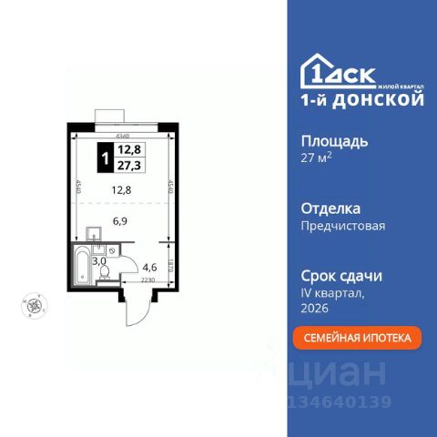 Прямая продажа от застройщика! Жилой Комплекс класса Комфорт Плюс. Продаётся квартира-студия номер 687 общей площадью 24.4 кв.м. на 24-м этаже 24 этажного здания. Предчистовая отделка. Особенности квартиры: - МЦД-5 в пешей доступности - Квартал с собственной набережной - Свои 2 детских сада и школа - Организуем показ в удобное для вас время! - Линейная планировка - максимальная функциональность и удобство. - Увеличенная высота потолков - ощущение простора и легкости. - Ниша под шкаф - компактное и удобное место для вещей. Квартира с предчистовой отделкой. Вам не придется заниматься черновыми и трудоёмкими работы, а чистовую отделку и дизайн - сделайте на свой вкус. Информация о комплексе: ЖК "1-й Донской" в 7 км от МКАД: гармония городского комфорта и природы. Квартиры на 2-3 стороны света, форма секций и разная этажность создают динамичную архитектуру. Тёплая палитра фасадов и подсветка подчеркивают образ. Рядом - Ермолинский парк, Видновский лесопарк и Жуковский парк. Природа воздействует на все уровни восприятия: от видов до звуков и ароматов. Идеальный баланс для жизни в гармонии с окружающей средой. Транспортная доступность: Комплекс удобно расположен в 7 км от МКАД по трассе М-4 Дон (через Видное). Расстояние до Каширского шоссе составляет 12 км. Добраться до метро и центра Москвы позволяет развитая сеть маршрутов общественного наземного транспорта. Действующая ж/д станция Калинина Павелецкого направления в 15-17 минутах ходьбы (МЦД-5 в 2025-2026 гг). Внутренняя инфраструктура: "1-й Донской": продуманная среда в развивающемся районе. На территории - муниципальные школа и 2 детских сада, поликлиника, торговый центр с площадью для мероприятий. Сеть пешеходных маршрутов ведёт к магазинам и кафе, отделённым от дорог зелёными фито-стенами. Сквозные подъезды с панорамным остеклением и входами с улицы и двора наполнены светом. Всё для комфортной жизни в шаговой доступности, от повседневных нужд до общественных пространств. Квартира с предчистовой отделкой - ваш дизайн без черновых работ