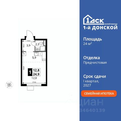 Прямая продажа от застройщика! Жилой Комплекс класса Комфорт Плюс. Продаётся квартира-студия номер 155 общей площадью 26.2 кв.м. на 16-м этаже 24 этажного здания. Без отделки. Цена с учётом скидки. Особенности квартиры: - МЦД-5 в пешей доступности - Квартал с собственной набережной - Свои 2 детских сада и школа - Организуем показ в удобное для вас время! - Линейная планировка - максимальная функциональность и удобство. Квартира без отделки. Чистый холст для воплощения интерьера вашей мечты. Информация о комплексе: ЖК "1-й Донской" в 7 км от МКАД: гармония городского комфорта и природы. Квартиры на 2-3 стороны света, форма секций и разная этажность создают динамичную архитектуру. Тёплая палитра фасадов и подсветка подчеркивают образ. Рядом - Ермолинский парк, Видновский лесопарк и Жуковский парк. Природа воздействует на все уровни восприятия: от видов до звуков и ароматов. Идеальный баланс для жизни в гармонии с окружающей средой. Транспортная доступность: Комплекс удобно расположен в 7 км от МКАД по трассе М-4 Дон (через Видное). Расстояние до Каширского шоссе составляет 12 км. Добраться до метро и центра Москвы позволяет развитая сеть маршрутов общественного наземного транспорта. Действующая ж/д станция Калинина Павелецкого направления в 15-17 минутах ходьбы (МЦД-5 в 2025-2026 гг). Внутренняя инфраструктура: "1-й Донской": продуманная среда в развивающемся районе. На территории - муниципальные школа и 2 детских сада, поликлиника, торговый центр с площадью для мероприятий. Сеть пешеходных маршрутов ведёт к магазинам и кафе, отделённым от дорог зелёными фито-стенами. Сквозные подъезды с панорамным остеклением и входами с улицы и двора наполнены светом. Всё для комфортной жизни в шаговой доступности, от повседневных нужд до общественных пространств. Квартира без отделки - чистый холст для вашего интерьера.