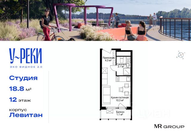 Прямая продажа от застройщика. Продаётся студия общей площадью 18.80 м² с предчистовой отделкой в ЖК "У реки. Эко Видное 2.0" на 12-м этаже 17 этажного корпуса Левитан. Все корпуса введены в эксплуатацию. Выдача ключей - II кв. 2025г. Семнадцатиэтажный корпус "Левитан" состоит из 13 секций, образующих в плане закрытый периметр двора. Эко-повестка и комфорт — это формат осознанной жизни, разработанный "Бюро А4" для благоустройства корпуса "Левитан". В проекте развиваются две темы: образ реки и настроения пейзажей Левитана которые раскрываются через четыре функциональные зоны. ЖК "У реки" — жилой микрорайон в Ленинском районе Подмосковья, в городе Видное. Архитектурные решения проекта разработаны бюро ADM, которое известно своими работами по созданию элитных объектов в столице. В проекте реализована продуманная европейская концепция благоустройства, включающая прогулочную набережную. О проекте: - 5 корпусов переменной этажности); - 8 км от МКАД, 30 минут до метро "Домодедовская", в 2025 года запланировано открытие станции МЦД-5 (дорога по Павелецкого вокзала займёт 30 минут); - Безопасные дворы с детскими и спортивными площадками для разных возрастов; - Собственная набережная с променадом, местами для пикников и рыбалки; - Два детских сада и школа на территории; - Развитая инфраструктура района; Компания MR предлагает своим клиентам специальные условия приобретения квартир в рамках программ ипотечного кредитования от банков-партнеров.