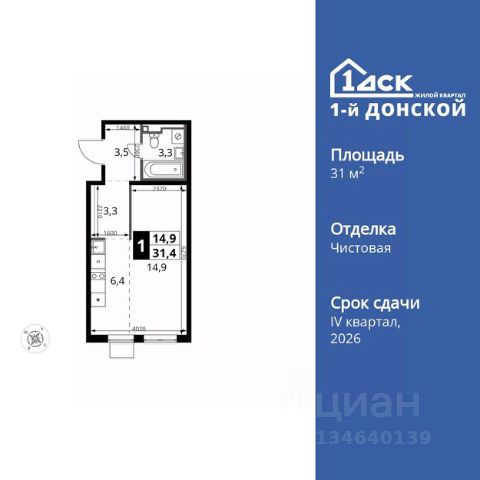 Прямая продажа от застройщика! Жилой Комплекс класса Комфорт Плюс. Продаётся квартира-студия номер 108 общей площадью 31.4 кв.м. на 12-м этаже 24 этажного здания. Чистовая отделка. Особенности квартиры: - МЦД-5 в пешей доступности - Квартал с собственной набережной - Свои 2 детских сада и школа - Линейная планировка - максимальная функциональность и удобство. - Линейная кухня - функциональность и практичность в одном решении. - Гардеробная - удобство для хранения и организации вещей. - Ниша под шкаф - компактное и удобное место для вещей. Информация о комплексе: Комплекс 1-й Донской расположен в 7 км от МКАД по трассе М-4 Дон. В нем сочетаются все плюсы комфортной городской среды и природного окружения. В проекте достаточно большой процент квартир, выходящих на 2-3 стороны света. Секции-маяки формируют у зданий визуальную L-форму, что придает застройке структуру и ритмику объемов. На ощущение динамики работает и разная этажность зданий. Теплая цветовая палитра фасадов отражает природу Дона. Вечерами дома преображаются благодаря архитектурной подсветке, выгодно выделяясь на городском фоне. Природа оказывает положительное влияние на человека на всех уровнях восприятия: через зрение, запахи, звуки, тактильные ощущения. Неподалеку от ЖК Первый Донской: Ермолинский парк, Видновский лесопарк, Жуковский парк Транспортная доступность: Комплекс удобно расположен в 7 км от МКАД по трассе М-4 Дон (через Видное). Расстояние до Каширского шоссе составляет 12 км. Добраться до метро и центра Москвы позволяет развитая сеть маршрутов общественного наземного транспорта. Действующая ж/д станция Калинина Павелецкого направления в 15-17 минутах ходьбы (МЦД-5 в 2025-2026 гг). Внутренняя инфраструктура: Проект 1-й Донской соседствует с бурно развивающимся районом, основная инфраструктура которого уже сложилась. В строительстве современных жилых комплексов в округе есть свои плюсы: здесь формируется продуманная и комфортная городская среда. Что касается внутренней инфраструктуры, на территории квартала будут расположены собственные муниципальные 2 детских садика и школа, которые помогут совместить приятное с полезным. Территория комплекса пронизана целой сетью живописных пешеходных маршрутов, позволяющих попасть в любой уголок района. Основные пути, как водится, "торговые". Они проходят вдоль магазинов, кафе и других представителей коммерции и отделяются от проезжей части зеленой "фито" - стеной. Среди крупных социальных объектов предусмотрены своя поликлиника и торговый центр с примыкающей площадью для общественных мероприятий. Уют начинается с продуманного подъезда. Сквозные подъезды наполнены светом благодаря сплошному остеклению. Вход в них есть и с улицы, и со двора.