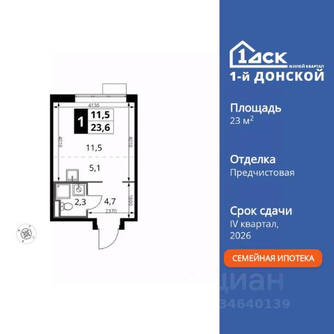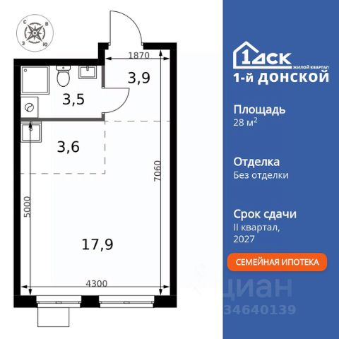 Прямая продажа от застройщика! Жилой Комплекс класса Комфорт Плюс. Продаётся квартира-студия номер 386 общей площадью 28.9 кв.м. на 13-м этаже 24 этажного здания. Без отделки. Цена с учётом скидки. Особенности квартиры: - МЦД-5 в пешей доступности - Квартал с собственной набережной - Свои 2 детских сада и школа - Организуем показ в удобное для вас время! - Линейная планировка - максимальная функциональность и удобство. Квартира без отделки. Чистый холст для воплощения интерьера вашей мечты. Информация о комплексе: ЖК "1-й Донской" в 7 км от МКАД: гармония городского комфорта и природы. Квартиры на 2-3 стороны света, форма секций и разная этажность создают динамичную архитектуру. Тёплая палитра фасадов и подсветка подчеркивают образ. Рядом - Ермолинский парк, Видновский лесопарк и Жуковский парк. Природа воздействует на все уровни восприятия: от видов до звуков и ароматов. Идеальный баланс для жизни в гармонии с окружающей средой. Транспортная доступность: Комплекс удобно расположен в 7 км от МКАД по трассе М-4 Дон (через Видное). Расстояние до Каширского шоссе составляет 12 км. Добраться до метро и центра Москвы позволяет развитая сеть маршрутов общественного наземного транспорта. Действующая ж/д станция Калинина Павелецкого направления в 15-17 минутах ходьбы (МЦД-5 в 2025-2026 гг). Внутренняя инфраструктура: "1-й Донской": продуманная среда в развивающемся районе. На территории - муниципальные школа и 2 детских сада, поликлиника, торговый центр с площадью для мероприятий. Сеть пешеходных маршрутов ведёт к магазинам и кафе, отделённым от дорог зелёными фито-стенами. Сквозные подъезды с панорамным остеклением и входами с улицы и двора наполнены светом. Всё для комфортной жизни в шаговой доступности, от повседневных нужд до общественных пространств. Квартира без отделки - чистый холст для вашего интерьера.