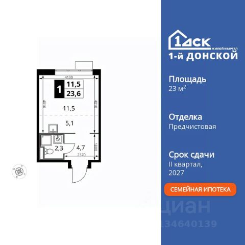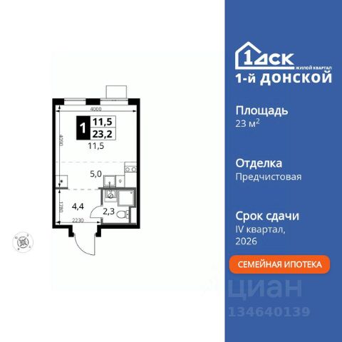 Прямая продажа от застройщика! Жилой Комплекс класса Комфорт Плюс. Продаётся квартира-студия номер 840 общей площадью 24.9 кв.м. на 13-м этаже 24 этажного здания. Предчистовая отделка. Цена с учётом скидки. Особенности квартиры: - МЦД-5 в пешей доступности - Квартал с собственной набережной - Свои 2 детских сада и школа - Организуем показ в удобное для вас время! - Линейная планировка - максимальная функциональность и удобство. - Ниша под шкаф - компактное и удобное место для вещей. Квартира с предчистовой отделкой. Вам не придется заниматься черновыми и трудоёмкими работы, а чистовую отделку и дизайн - сделайте на свой вкус. Информация о комплексе: ЖК "1-й Донской" в 7 км от МКАД: гармония городского комфорта и природы. Квартиры на 2-3 стороны света, форма секций и разная этажность создают динамичную архитектуру. Тёплая палитра фасадов и подсветка подчеркивают образ. Рядом - Ермолинский парк, Видновский лесопарк и Жуковский парк. Природа воздействует на все уровни восприятия: от видов до звуков и ароматов. Идеальный баланс для жизни в гармонии с окружающей средой. Транспортная доступность: Комплекс удобно расположен в 7 км от МКАД по трассе М-4 Дон (через Видное). Расстояние до Каширского шоссе составляет 12 км. Добраться до метро и центра Москвы позволяет развитая сеть маршрутов общественного наземного транспорта. Действующая ж/д станция Калинина Павелецкого направления в 15-17 минутах ходьбы (МЦД-5 в 2025-2026 гг). Внутренняя инфраструктура: "1-й Донской": продуманная среда в развивающемся районе. На территории - муниципальные школа и 2 детских сада, поликлиника, торговый центр с площадью для мероприятий. Сеть пешеходных маршрутов ведёт к магазинам и кафе, отделённым от дорог зелёными фито-стенами. Сквозные подъезды с панорамным остеклением и входами с улицы и двора наполнены светом. Всё для комфортной жизни в шаговой доступности, от повседневных нужд до общественных пространств. Квартира с предчистовой отделкой - ваш дизайн без черновых работ