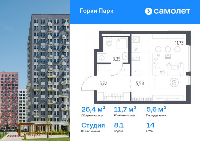 Строим кварталы для жизни с заботой о будущем. Предлагается квартира студия комфорт-класса 25,91 кв.м в корпусе 6.2 на 14 этаже, в ЖК "Горки Парк" Квартира с чистовой отделкой. Доступность дополнительных опций уточняйте у застройщика. Приобрести квартиру возможно по специальным акциям от застройщика, с текущими условиями акций можно ознакомиться в блоке "Акций". Цена динамическая и может отличаться, уточняйте актуальность у застройщика. Уединенный жилой комплекс, где хочется остаться. До МКАДа всего 10 минут на авто, а прямо рядом с домами есть лес — идеально для прогулок, занятий спортом и медитаций. Фасады 1117-этажных корпусов дополняют яркие вставки — каждый дом особенный. На территории проекта появятся ФОК и поликлиника, детские сады и школы. Наслаждаться счастливой жизнью в квартале можно уже сейчас — здесь есть готовые дома, но при этом появляются и новые корпуса. "Горки Парк" — это: 1. 10 минут на машине до МКАДа 2. 20 минут на машине до метро "Домодедовская" и 18 минут — до аэропорта Домодедово 3. Пешеходные бульвары и пространства для отдыха 4. Выход в лесопарк с благоустроенными экотропами 5. Приватные дворы без машин 6. Экомаршрут в Коробовском лесопарке рядом с домом, который соединит кварталы: "Пригород Лесное", "Горки Парк" и "Богдановский Лес" 7. Запланировано 3 школы и 6 детских садов 8. Уже построили детский сад и школу со спортивным ядром, где смогут тренироваться жители квартала 9. Поликлиника и спорткомплекс внутри проекта 10. Магазины и кофейни на первых этажах 11. Игровые площадки и воркаут-зона 12. Прогулочная зона рядом с кварталом 13. Спортивно-игровой кластер 14. Площадки для занятий йогой и игры в пинг-понг — в части дворов 15. Рабочий остров и площадка для отдыха — в части дворов 16. Веревочный панда-парк — в будущем 17. Площадка для выгула собак 18. Балконы с панорамным остеклением 19. Увеличенные окна в квартирах 20. Входы на уровне земли 21. Места для хранения велосипедов и колясок