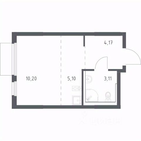 Продаётся квартира-студия 25,8кв. м. с балконом 5,4кв. м.