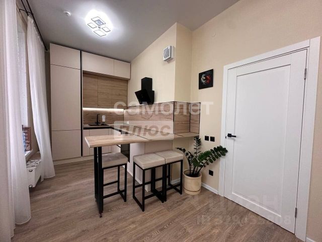 В 15-ти этажном доме на 15-м этаже 2022г. постройки. Квартира-студия 25,8 кв. м. плюс 5,4кв. м. балкон с панорамным остеклением, на последнем этаже - тишина, никто не топает над головой. Вид из окон во двор, далее на лес. Квартира-студия новая, с отделкой обои под покраску, на полу ламинат, просторная ванная отделана плиткой с теплыми полами, вся сантехника установлена. Высота потолков в студии 3метра, что дает возможность пользоваться пристроенной мебельной антресолью не только для хранения подушек, одеял, матрасов, но и как дополнительным спальным местом (210см х 250см). Умный дом, защита от протечек, датчики пожарной безопасности ,вай фай...